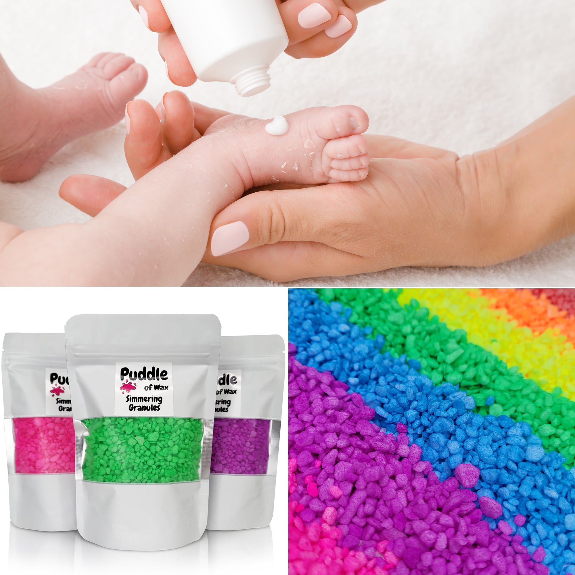 Simmering granules, also known as sizzlers or scented granules, are small beads infused with fragrance oil. They work similarly to wax melts and require no additional oil or water to use.