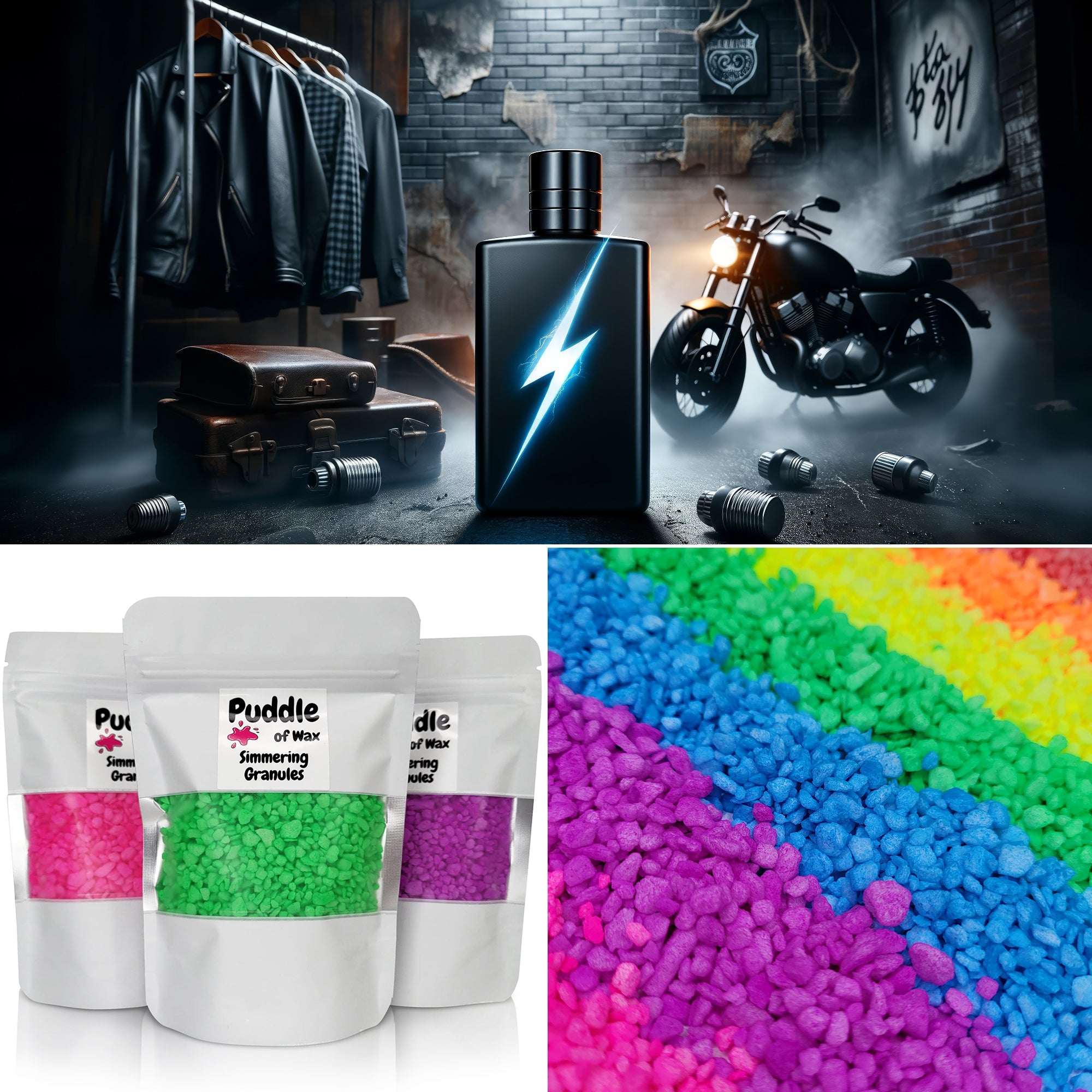 Simmering granules, also known as sizzlers or scented granules, are small beads infused with fragrance oil. They work similarly to wax melts and require no additional oil or water to use.
