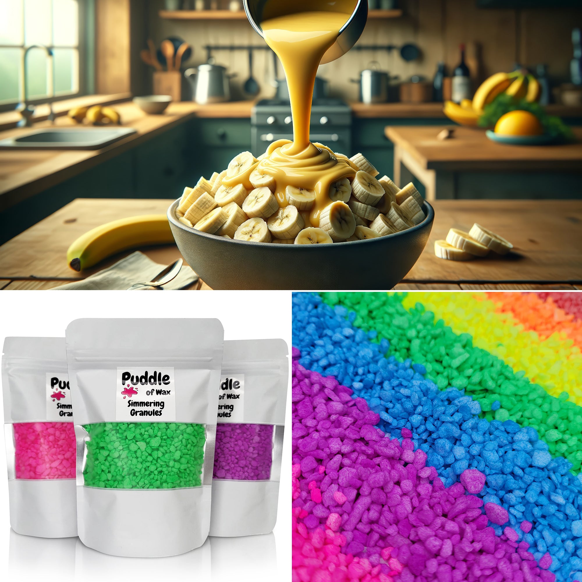 Simmering granules, also known as sizzlers or scented granules, are small beads infused with fragrance oil. They work similarly to wax melts and require no additional oil or water to use.