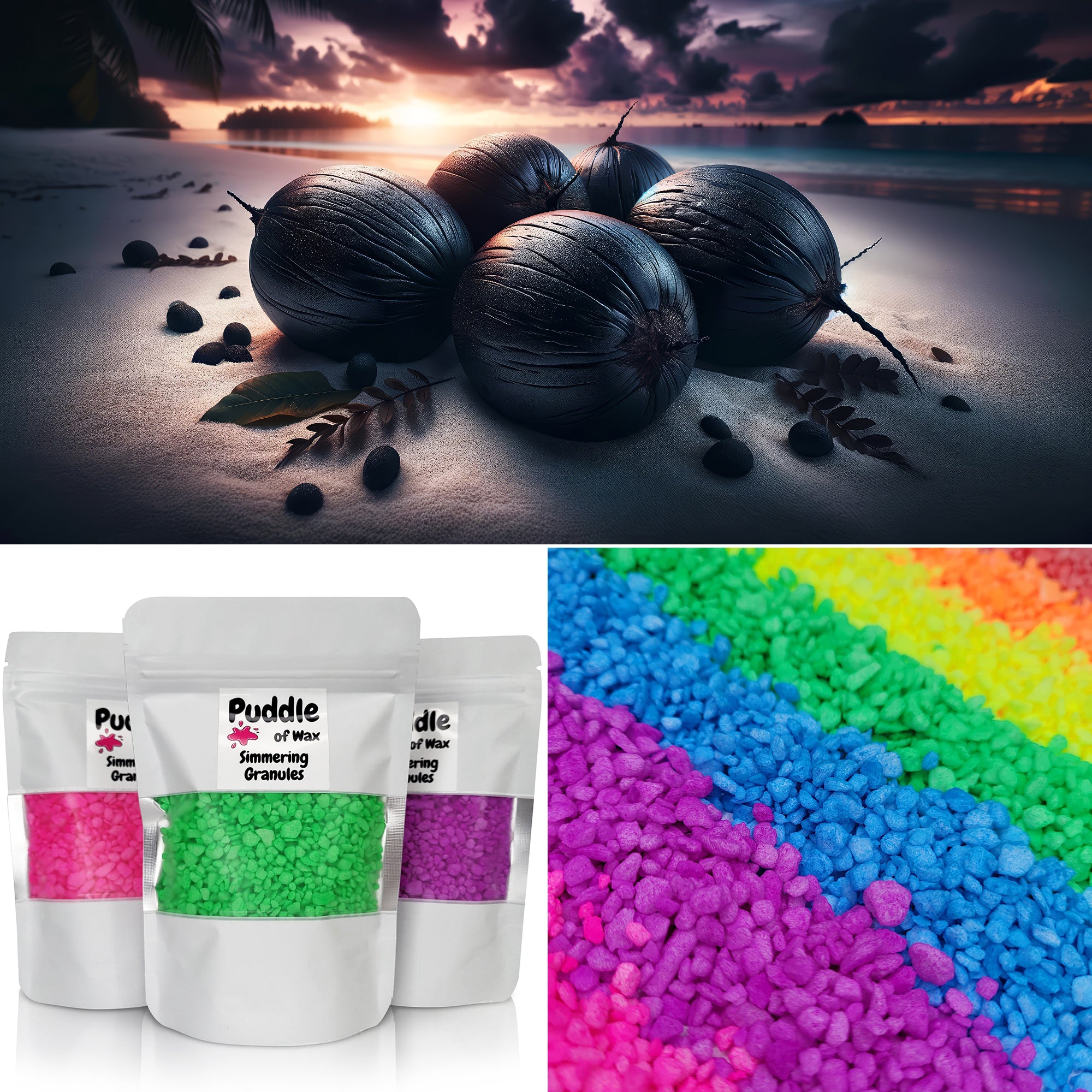 Simmering granules, also known as sizzlers or scented granules, are small beads infused with fragrance oil. They work similarly to wax melts and require no additional oil or water to use.