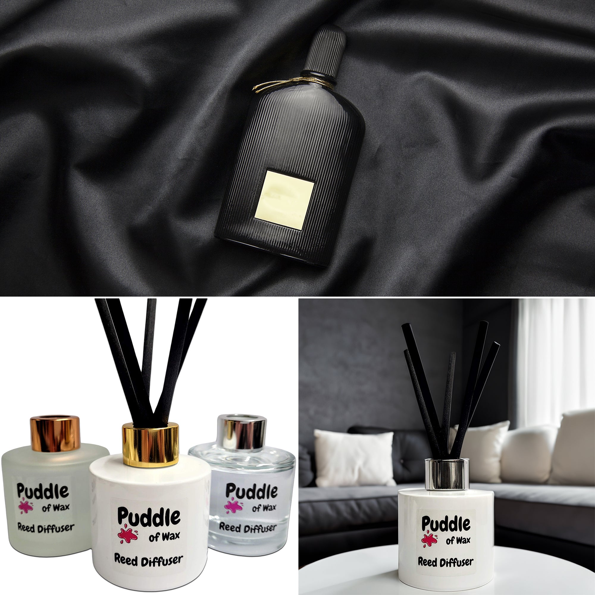 Our reed diffusers are packaged in 120ml glass bottles, available in your choice of clear, frosted, or gloss white. Each bottle is finished with a screw-on cap in your choice of silver, rose gold, or gold, adding a touch of style to match any décor.