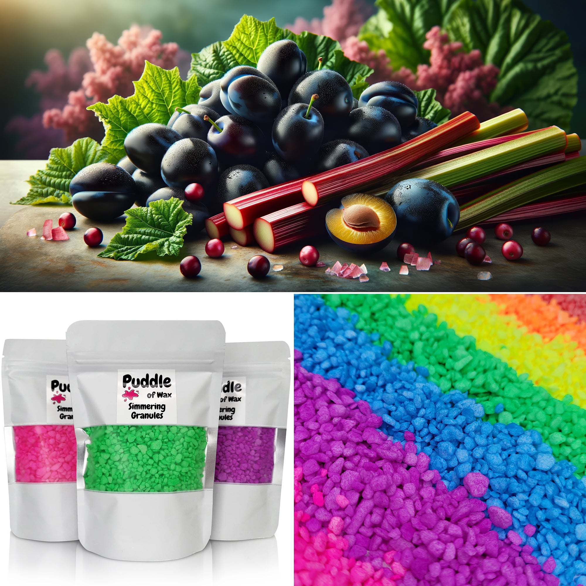 Black Plum & Rhubarb Scent: A fresh fruity aroma opening with tart notes of garden rhubarb and juicy black plum combined with notes of grapefruit, strawberry and raspberry all on a base of cedar, vanilla and musk.