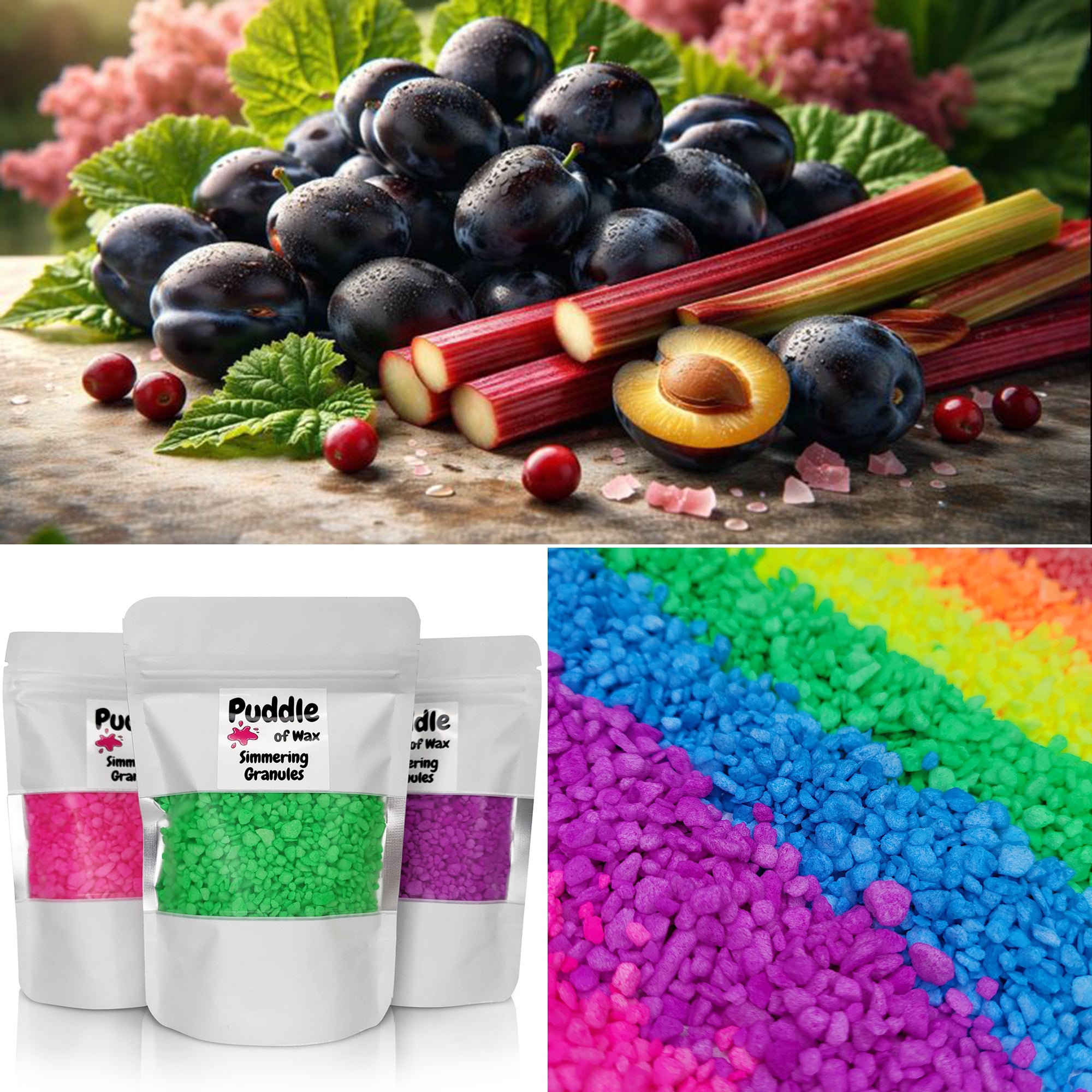Simmering granules, also known as sizzlers or scented granules, are small beads infused with fragrance oil. They work similarly to wax melts and require no additional oil or water to use.