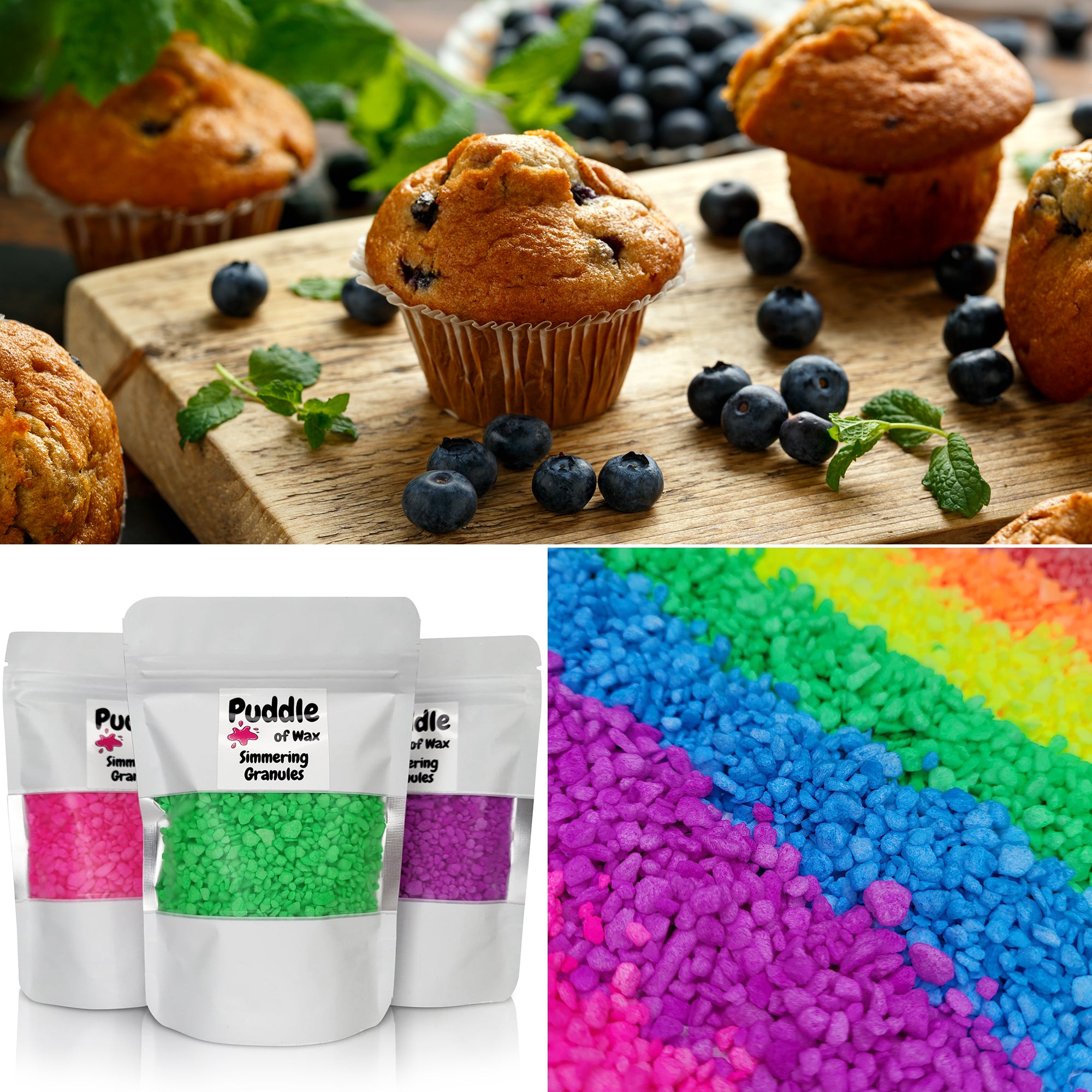 Simmering granules, also known as sizzlers or scented granules, are small beads infused with fragrance oil. They work similarly to wax melts and require no additional oil or water to use.