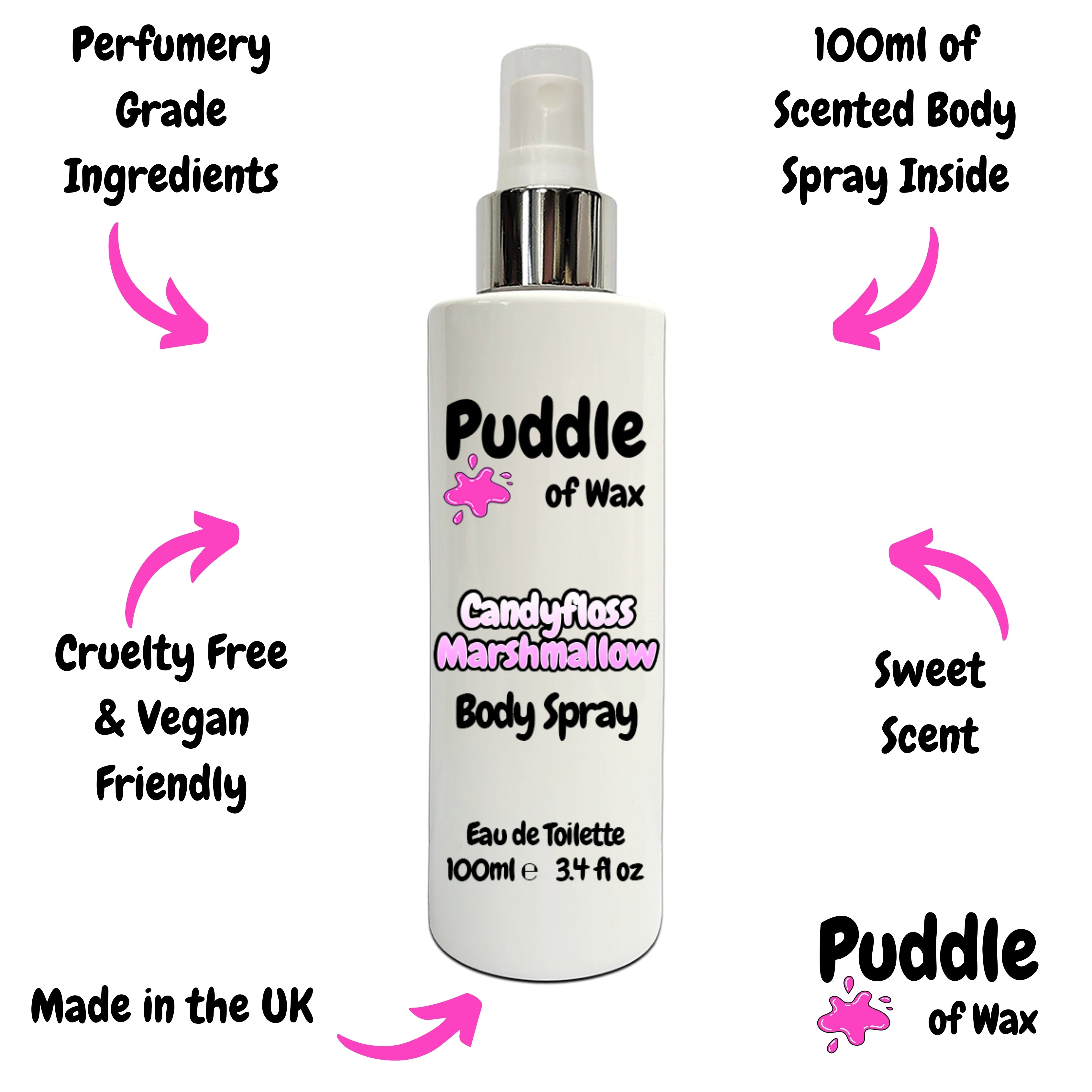 Our body sprays are packaged in modern, gloss white bottles, available in a convenient 100ml size. Each bottle is equipped with a stylish atomiser for consistent and even mist distribution.
