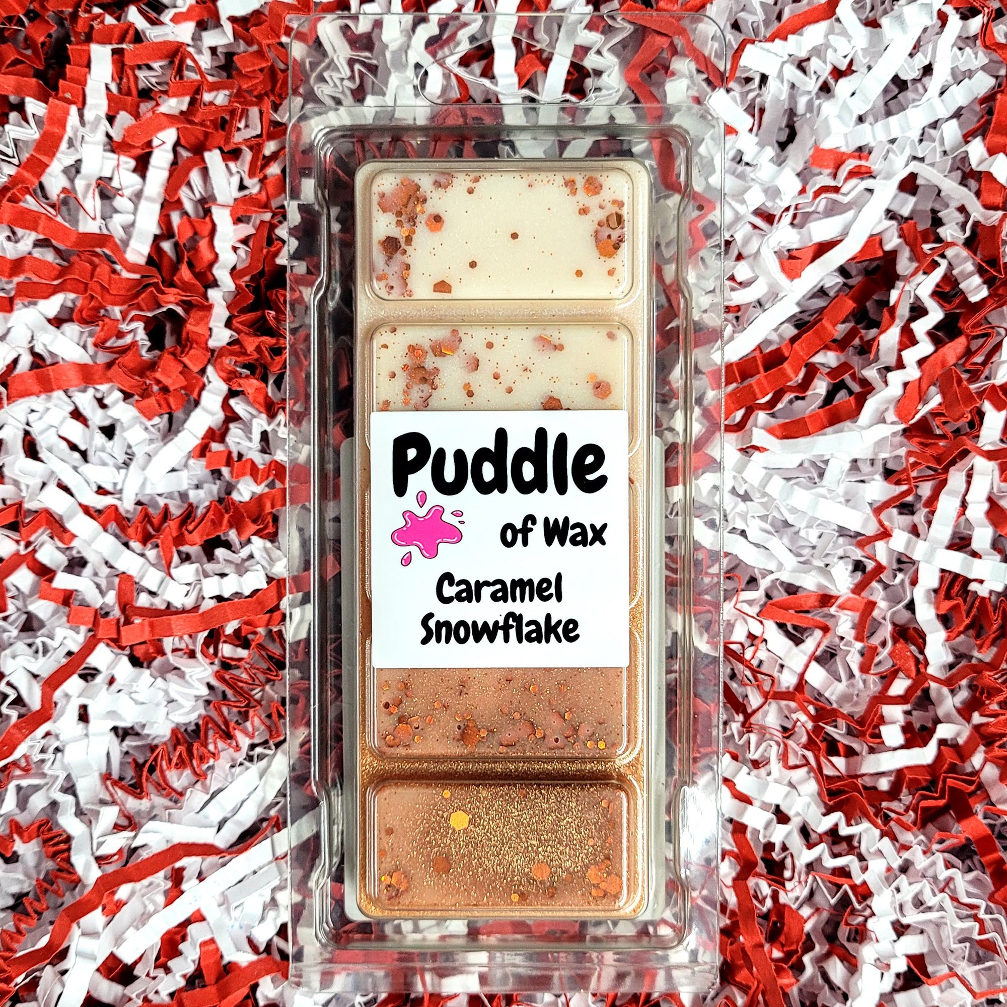 Caramel Snowflake Scent: Fluffy marshmallow, cashmere, walnut cream, waffles, cedar wood with a drizzle of caramel.