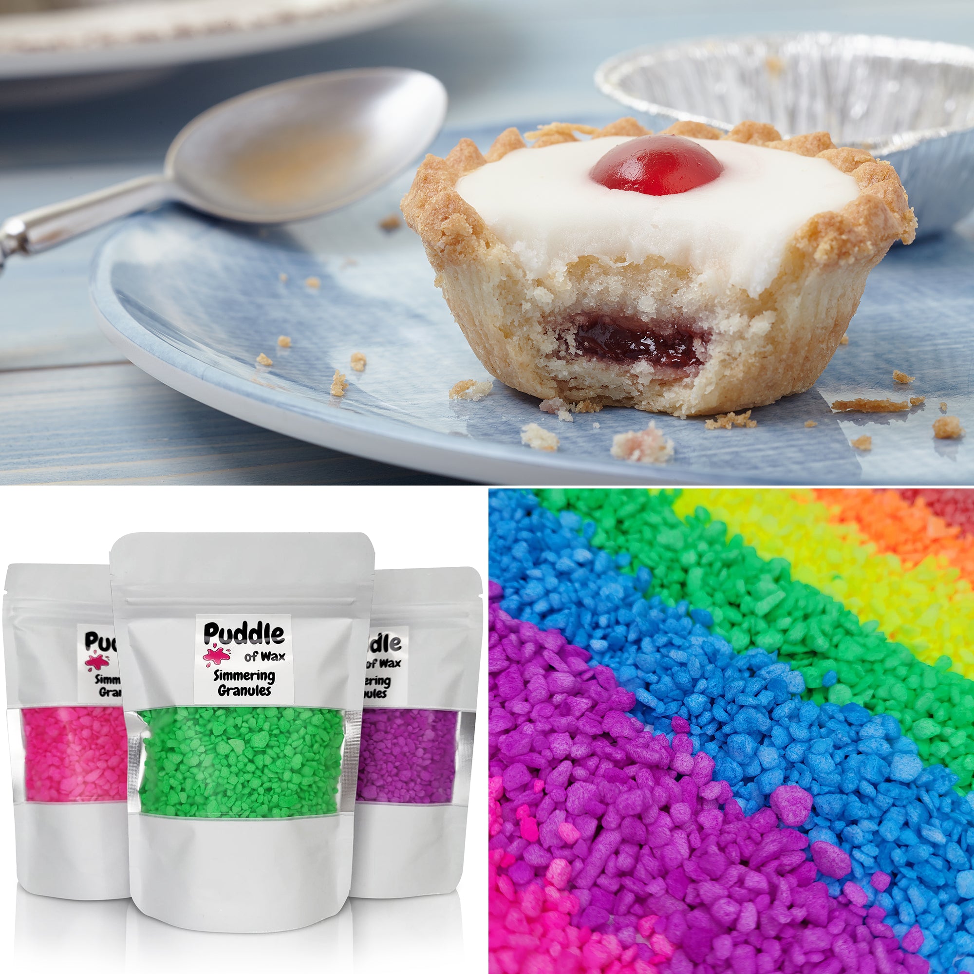 Simmering granules, also known as sizzlers or scented granules, are small beads infused with fragrance oil. They work similarly to wax melts and require no additional oil or water to use.