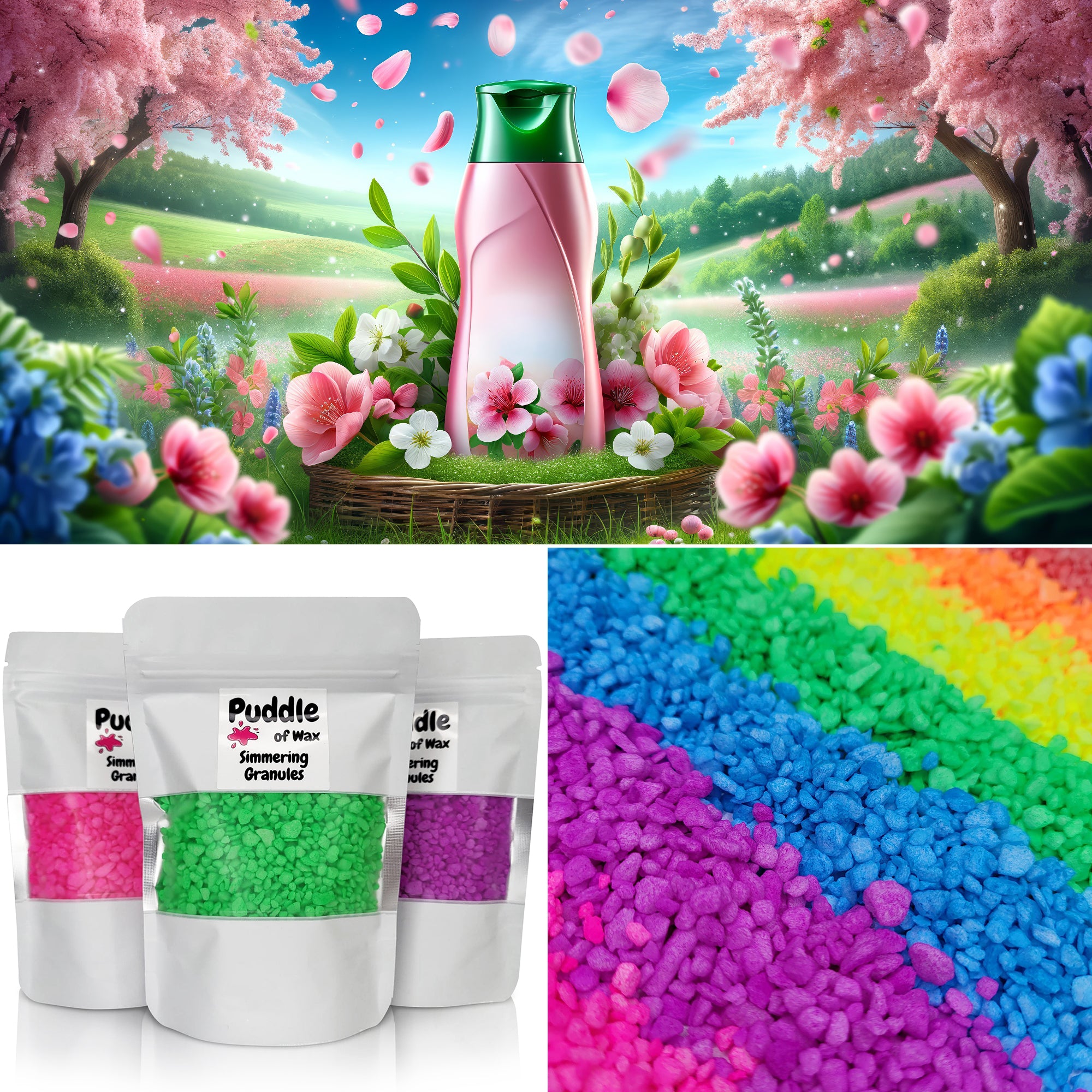 Simmering granules, also known as sizzlers or scented granules, are small beads infused with fragrance oil. They work similarly to wax melts and require no additional oil or water to use.