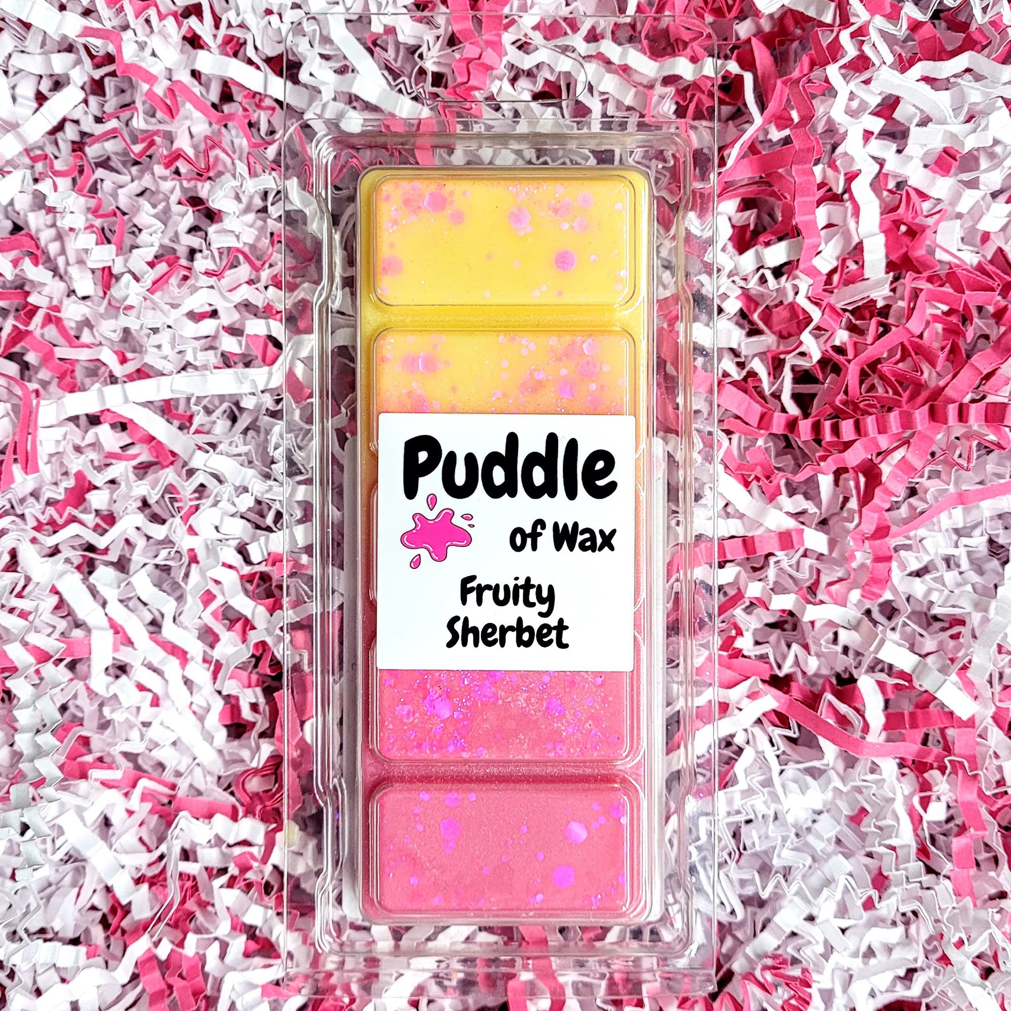Fruity Sherbet Scent: A fizzy fruity fragrance with notes of Raspberry, Peach, Orange, Apple and Lemon, resting on a sweet vanilla sugary base.