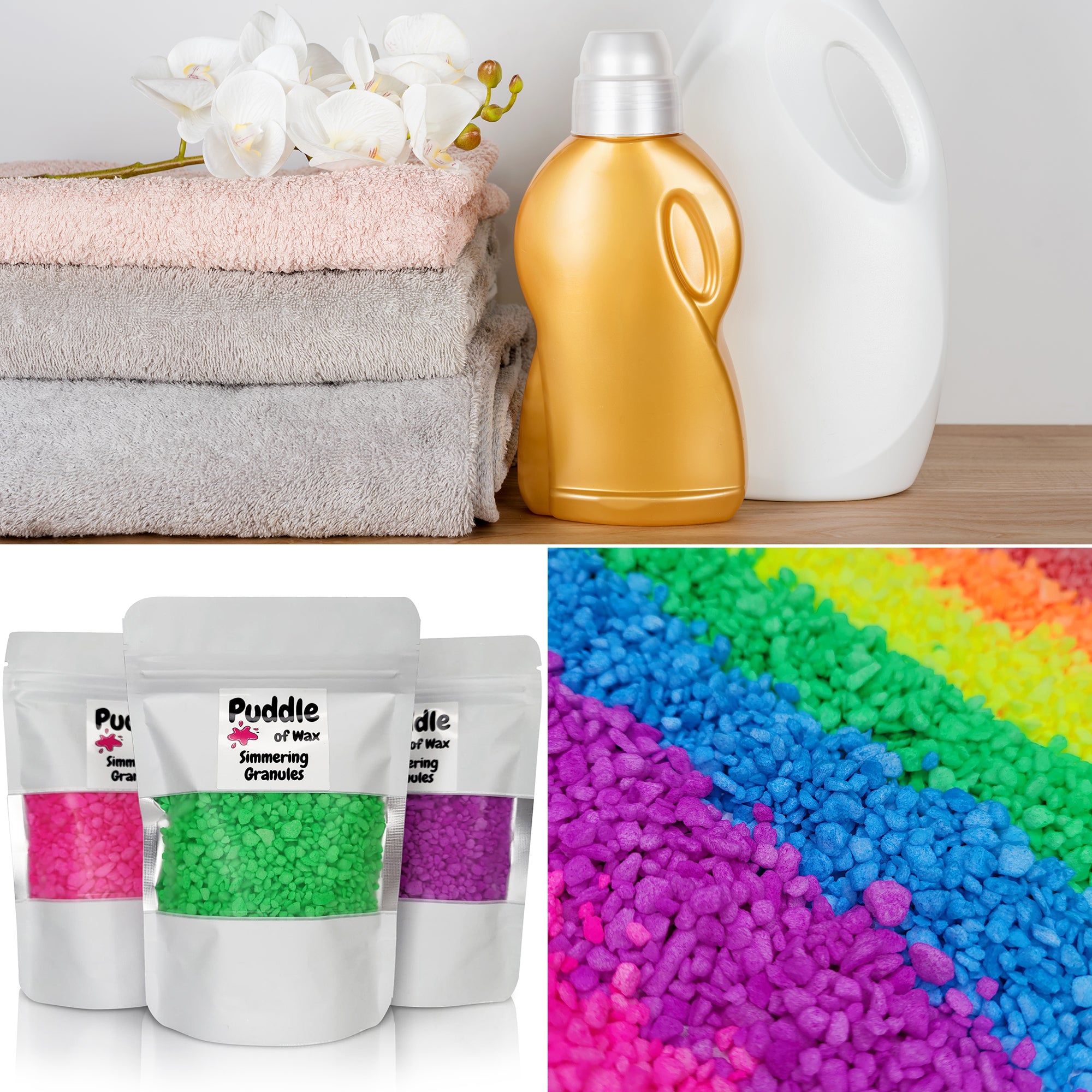 Simmering granules, also known as sizzlers or scented granules, are small beads infused with fragrance oil. They work similarly to wax melts and require no additional oil or water to use.