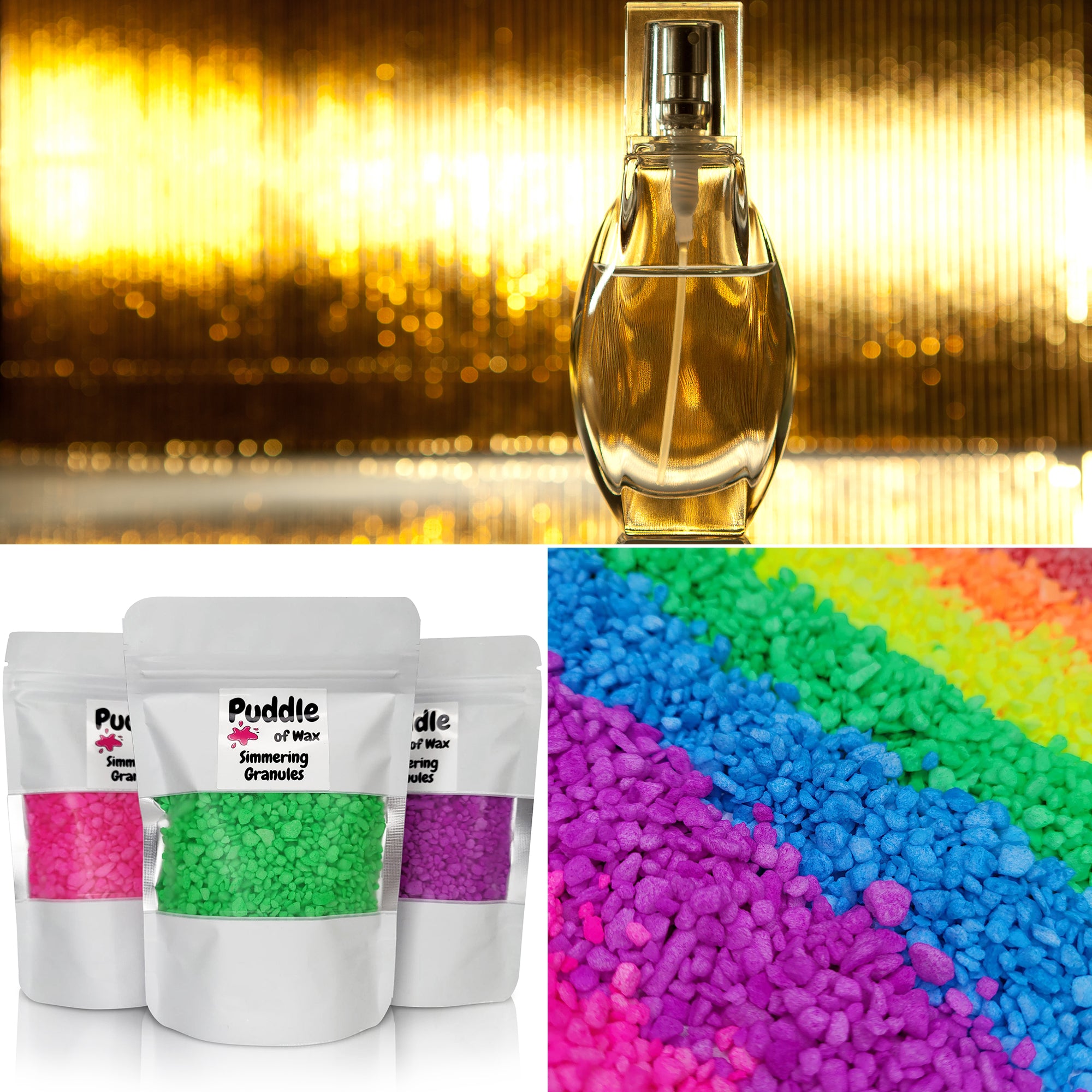 Simmering granules, also known as sizzlers or scented granules, are small beads infused with fragrance oil. They work similarly to wax melts and require no additional oil or water to use.