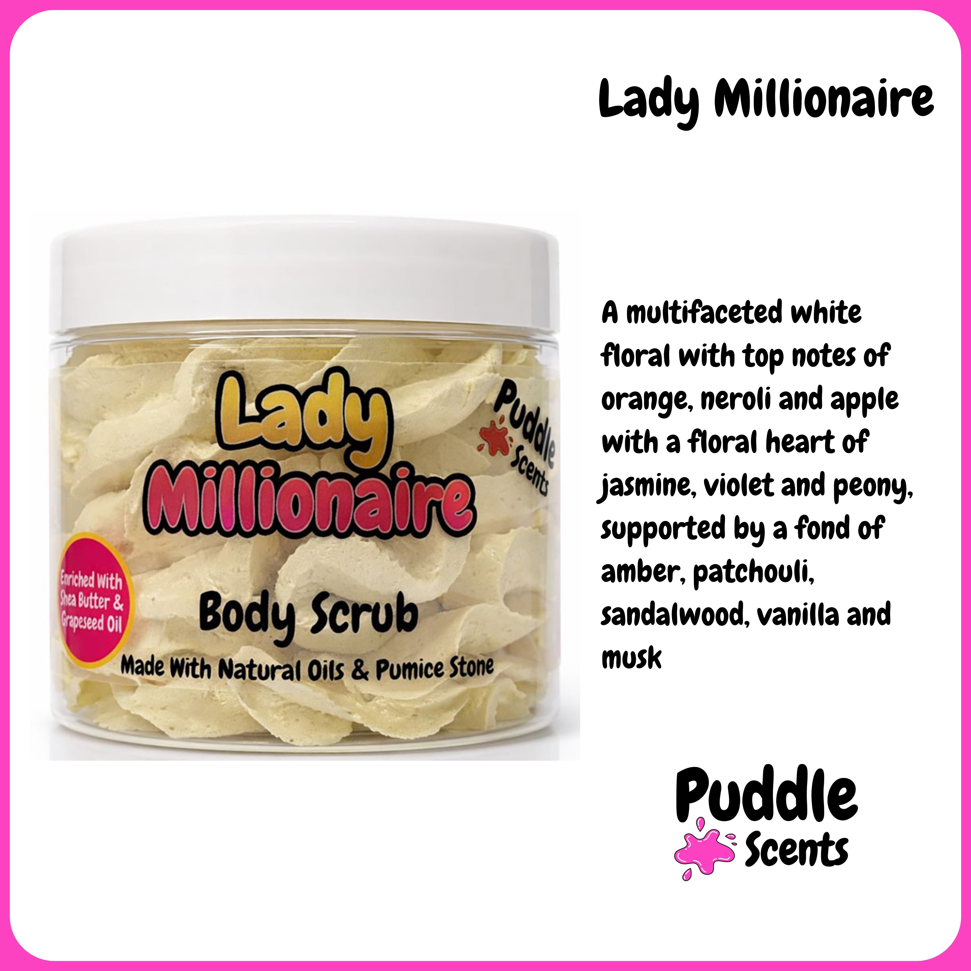 Scoop out a small amount of body scrub into your hands or onto a shower puff, then work it into a rich, creamy lather. Massage the lather onto your hands or over your body, then rinse thoroughly with water.