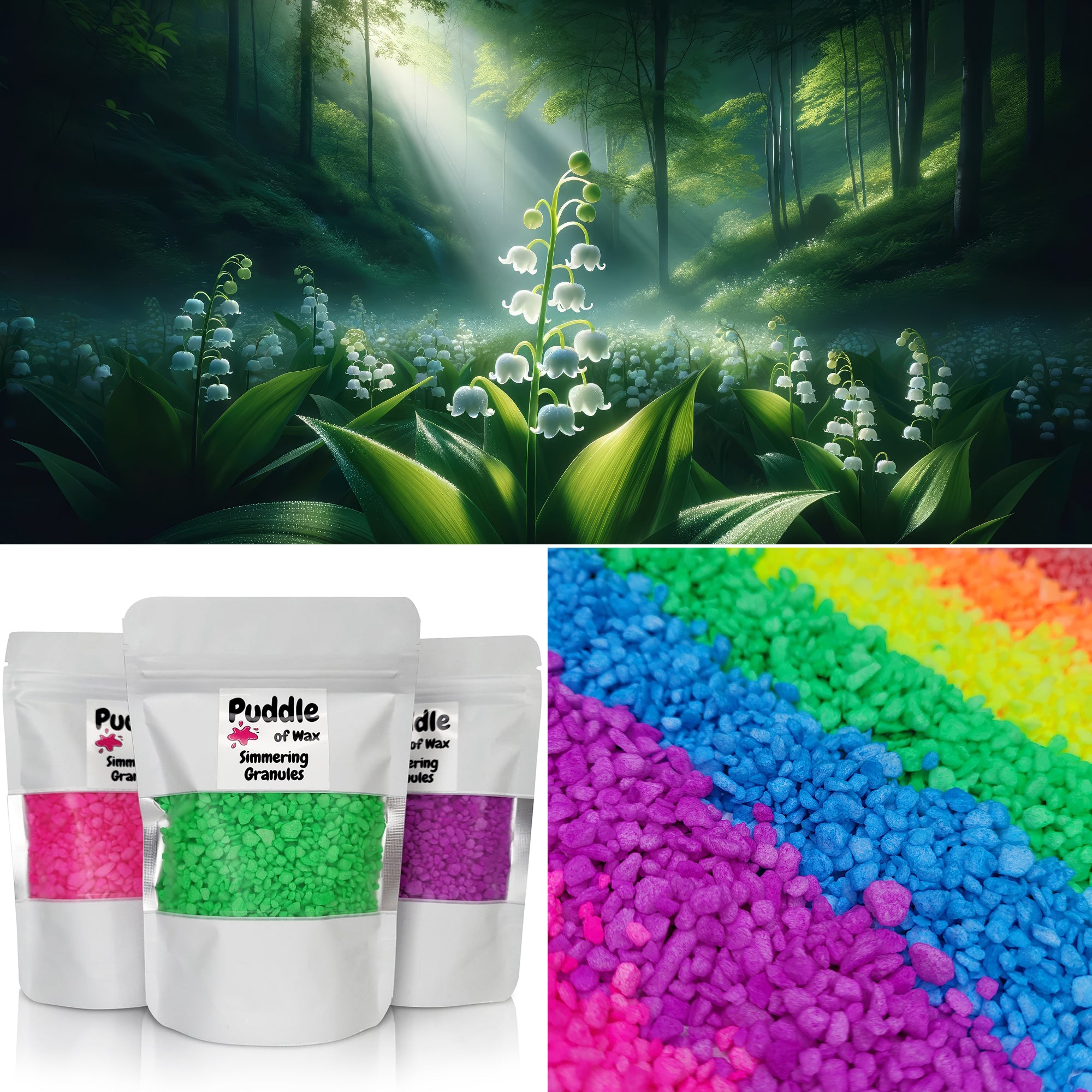 Simmering granules, also known as sizzlers or scented granules, are small beads infused with fragrance oil. They work similarly to wax melts and require no additional oil or water to use.