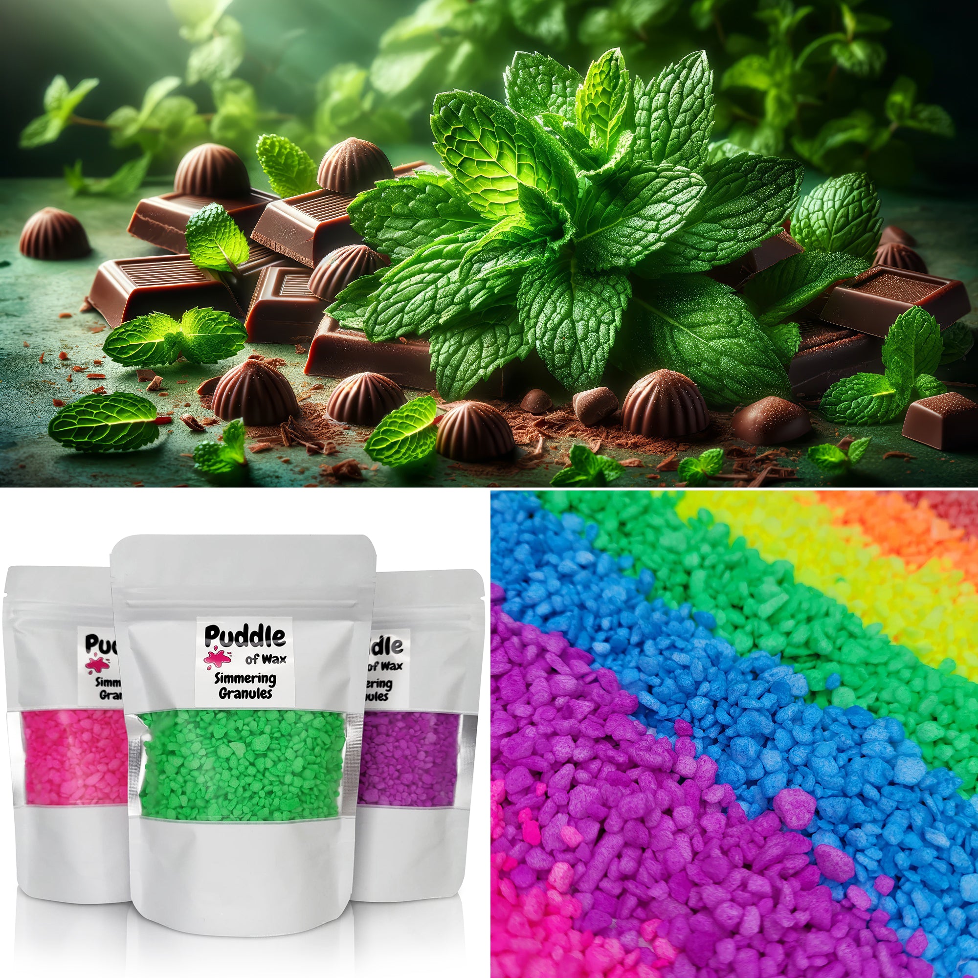 Mint Chocolate Scent: A delicious chocolate fragrance refreshed with notes of peppermint.