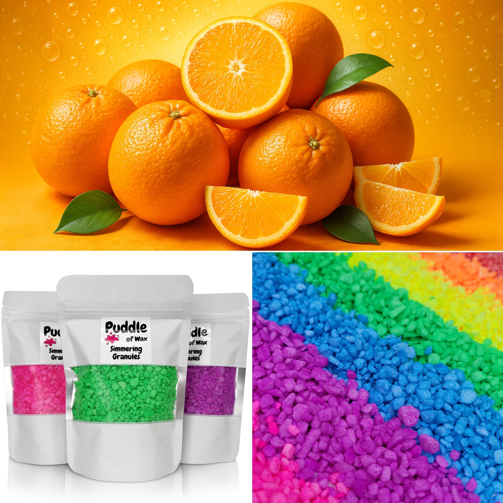 Simmering granules, also known as sizzlers or scented granules, are small beads infused with fragrance oil. They work similarly to wax melts and require no additional oil or water to use.