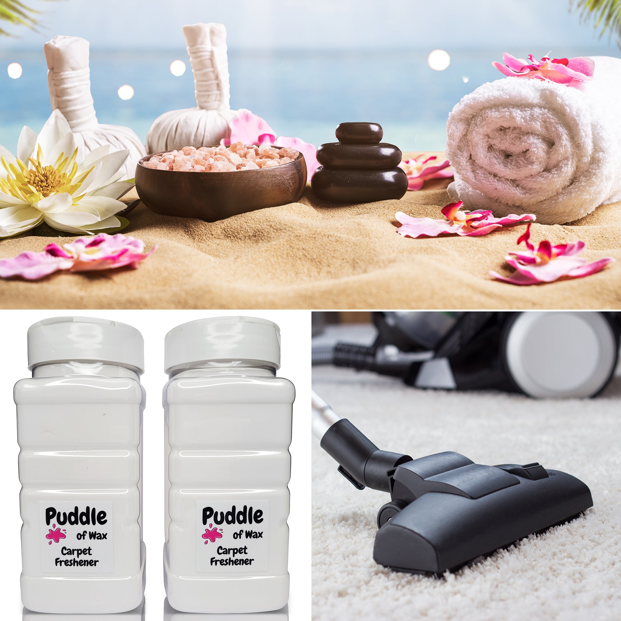 Our carpet fresheners are packaged in clear plastic containers that hold 500g of powder. Each one is equipped with a shaker-style cap, allowing you to easily sprinkle the powder over carpets or into small spaces.