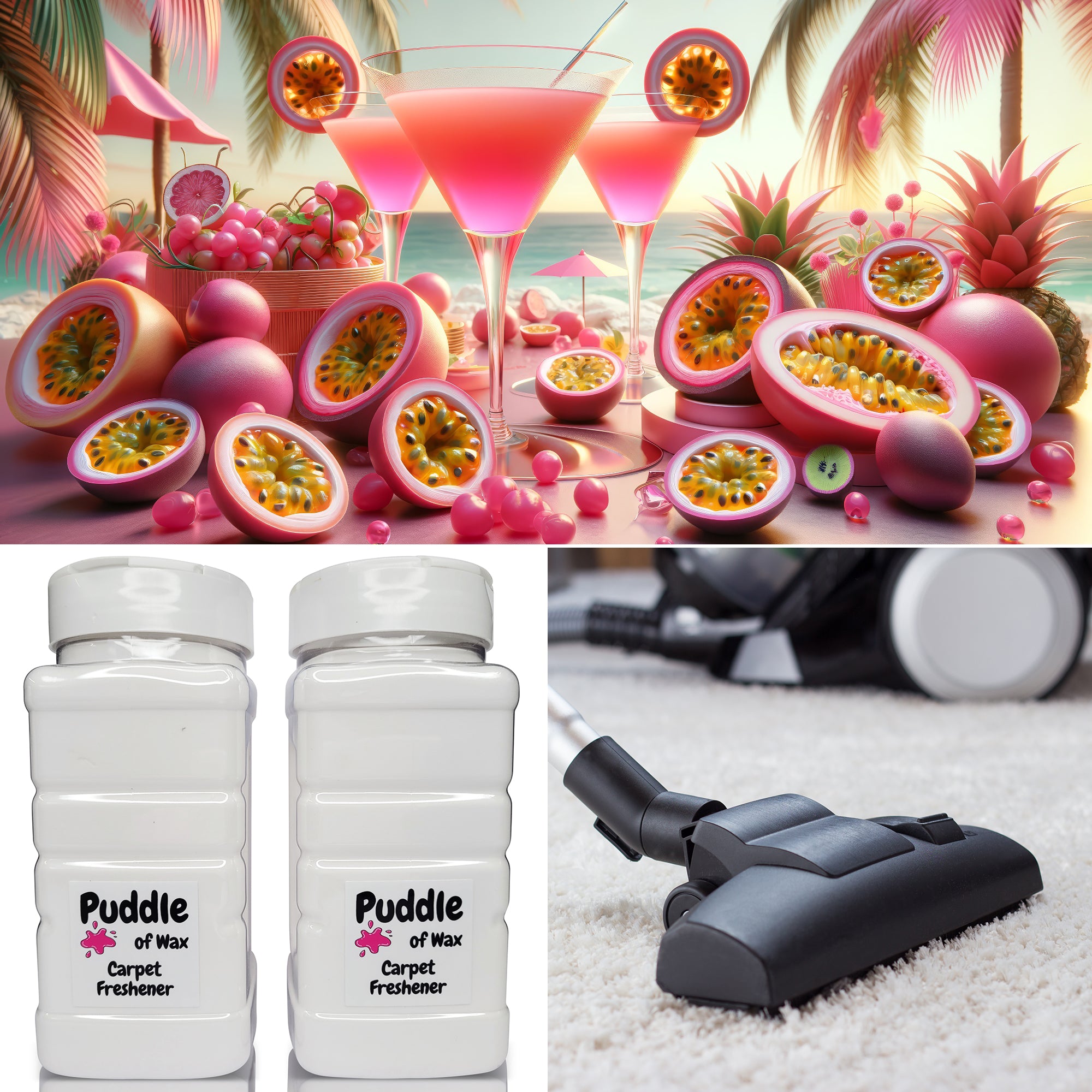 Passionfruit Martini Scent: A passionfruit martini fragrance mixing sweet vanilla vodka with fresh passionfruit puree and a sliced passionfruit garnish paired with a shot of fizz.