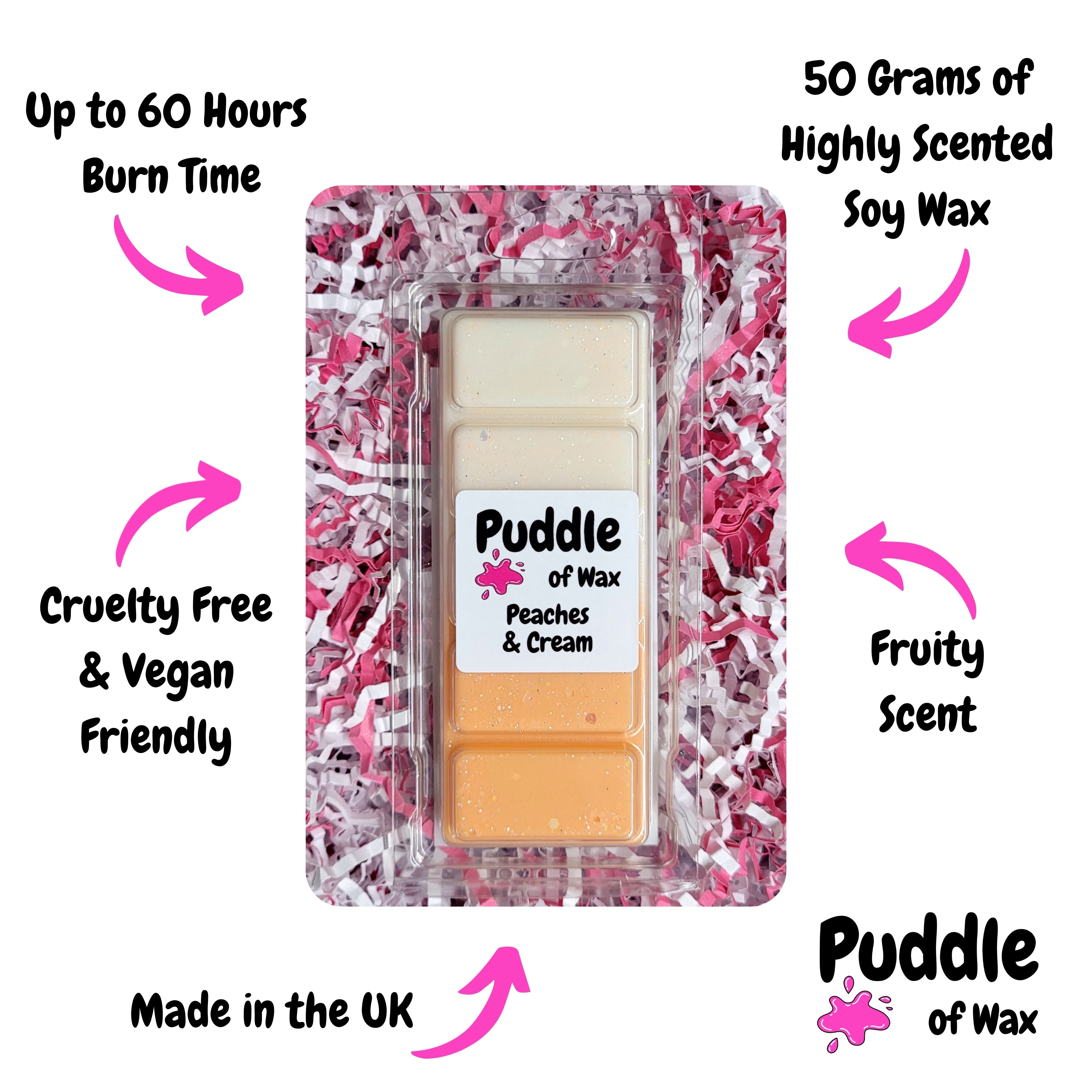 Peaches & Cream Scent: A fruity, edible accord of fresh peaches combined with cream and vanilla with a touch of raspberry and sugar on a sweet musk base.