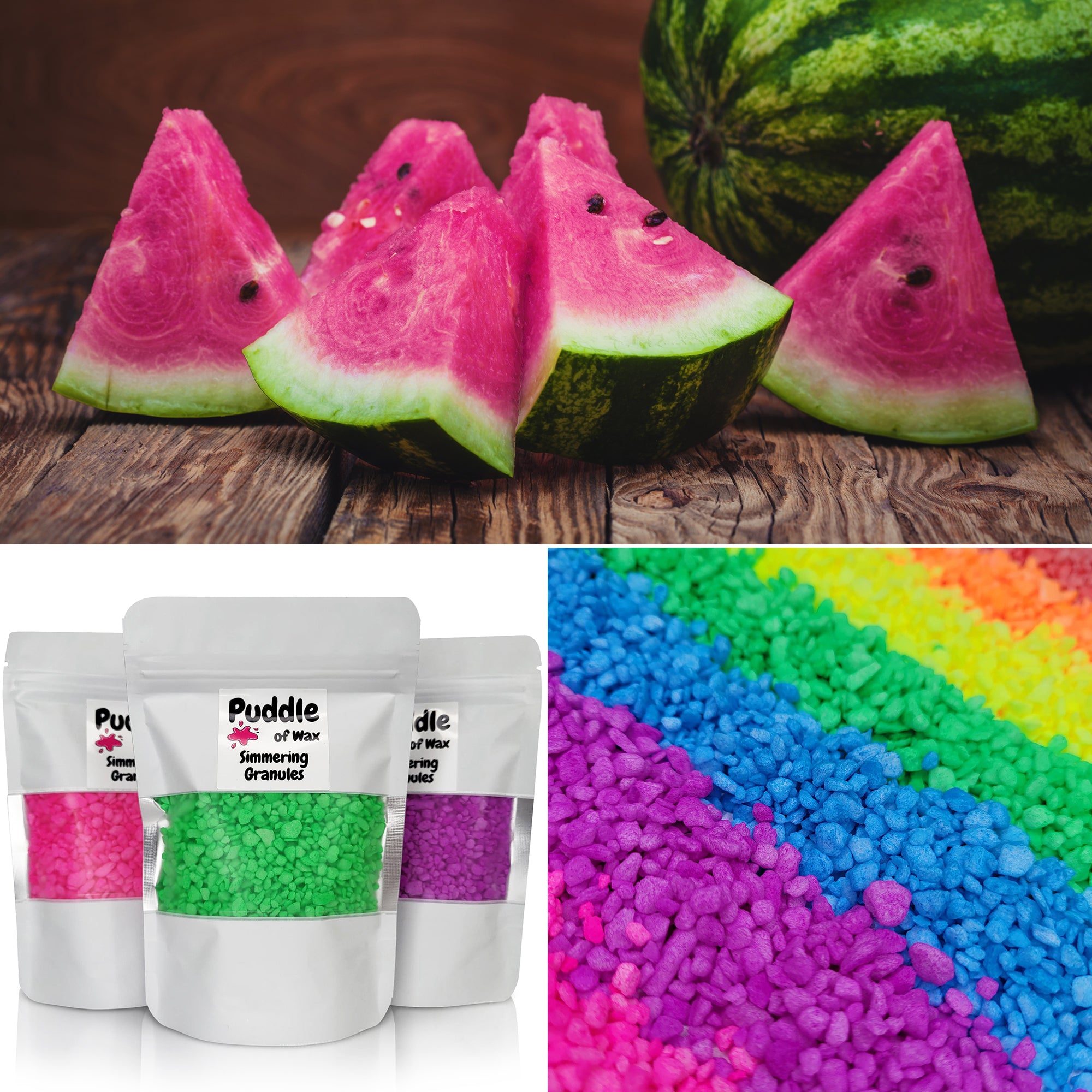 Simmering granules, also known as sizzlers or scented granules, are small beads infused with fragrance oil. They work similarly to wax melts and require no additional oil or water to use.
