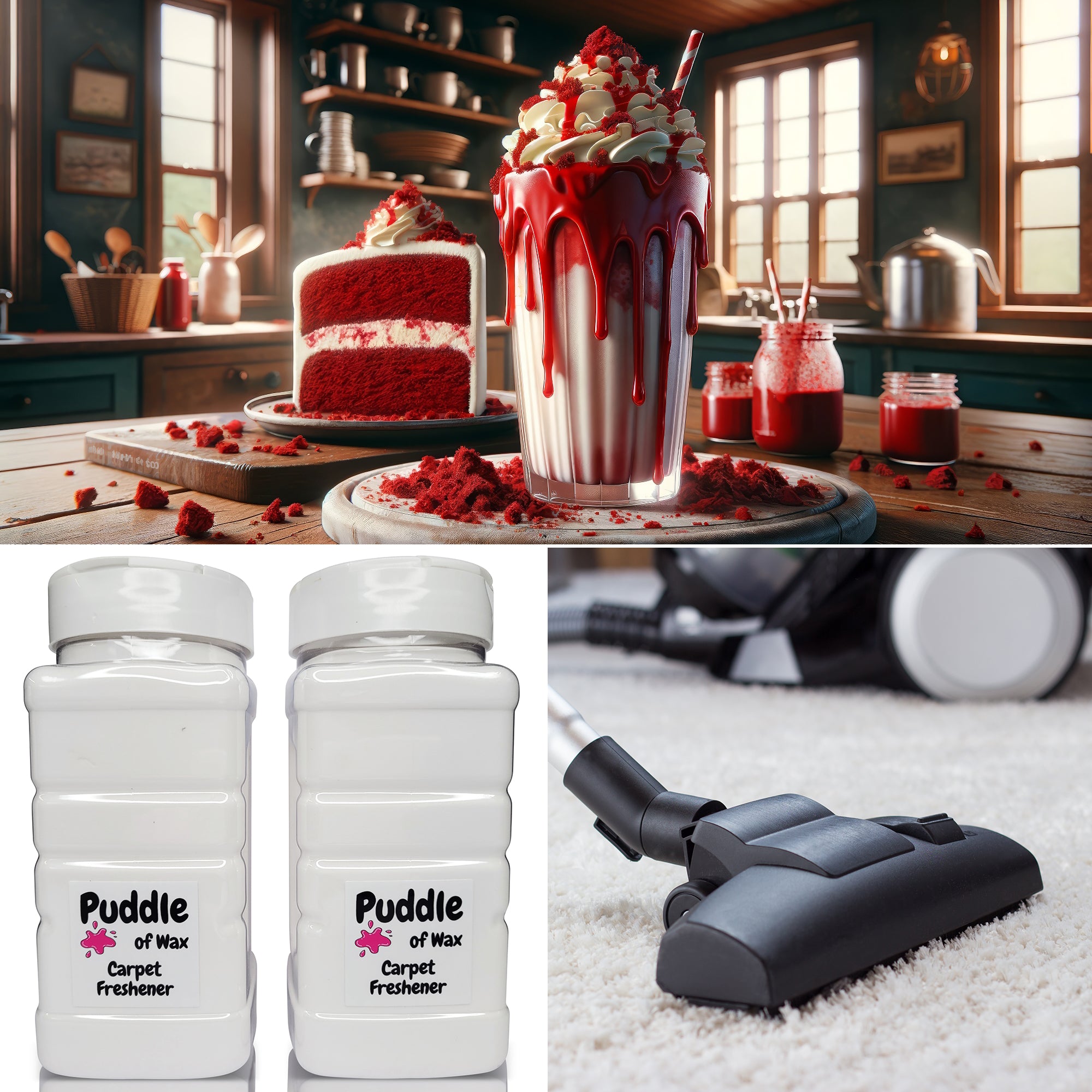 Red Velvet Freakshake Scent: A rich red velvet cupcake accord with notes of chocolate, buttermilk, cream cheese & roasted hazelnuts, on a freshly baked base, topped with icing sugar, ice cream & chocolate sprinkles.