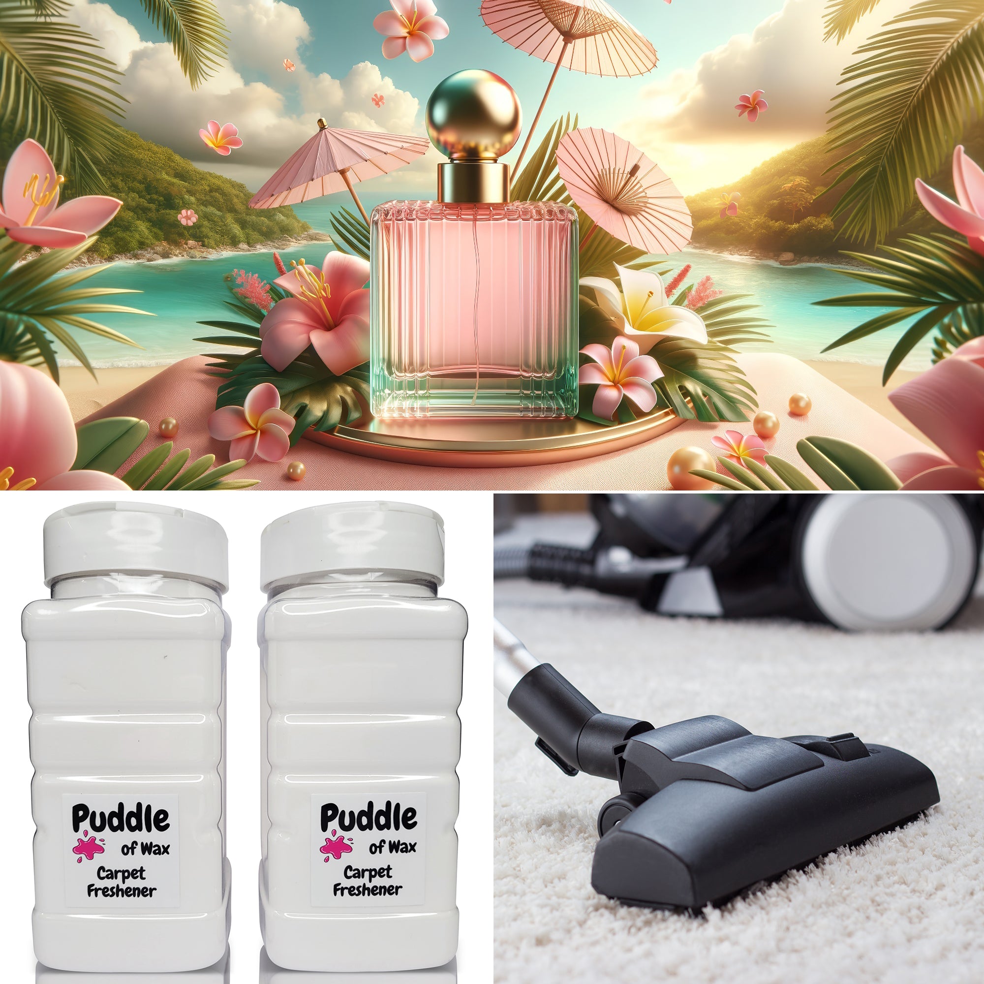 Our carpet fresheners are packaged in clear plastic containers that hold 500g of powder. Each one is equipped with a shaker-style cap, allowing you to easily sprinkle the powder over carpets or into small spaces.