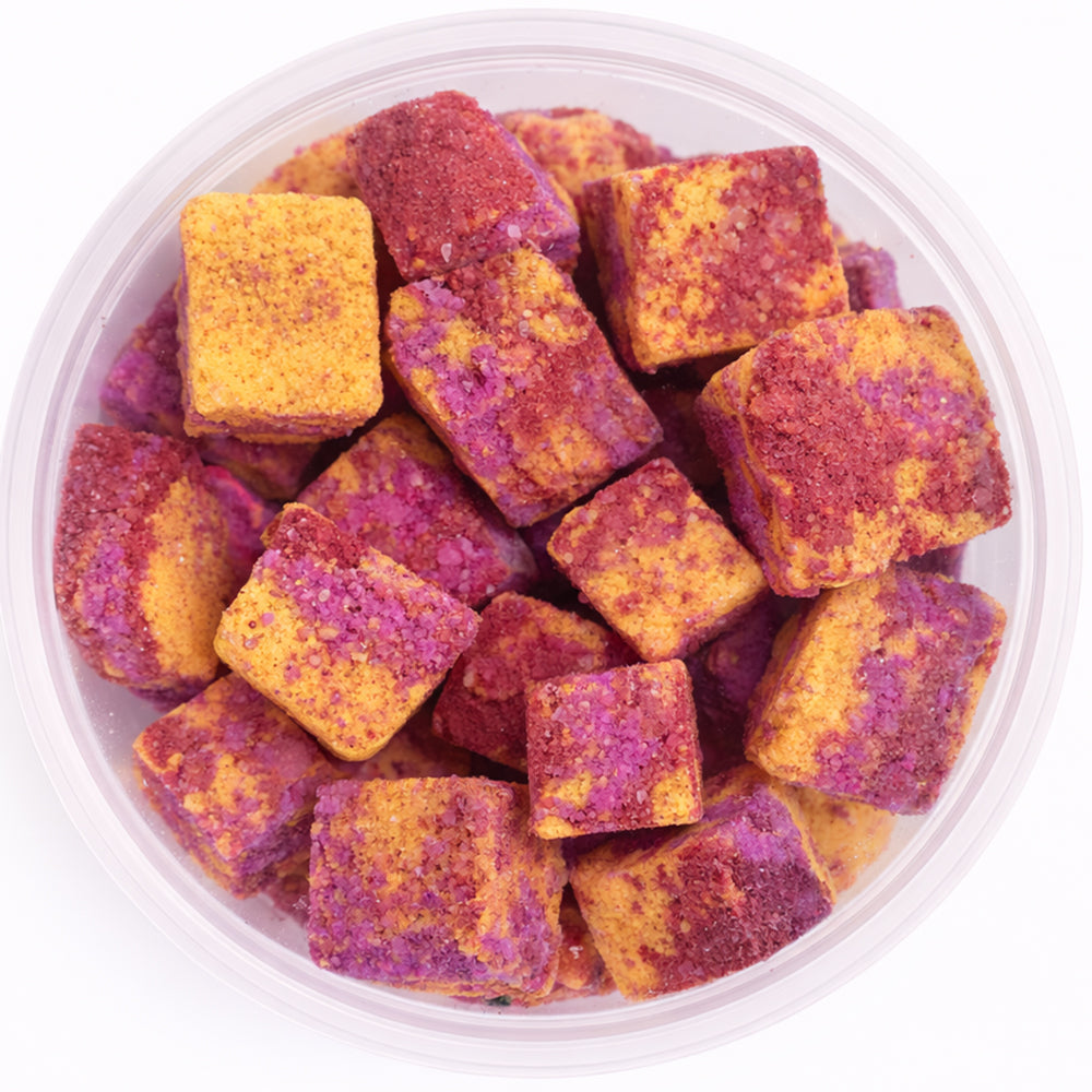 Our bath rocks create an explosion of colour, fizz and foam while releasing scent and colouring your bath water.