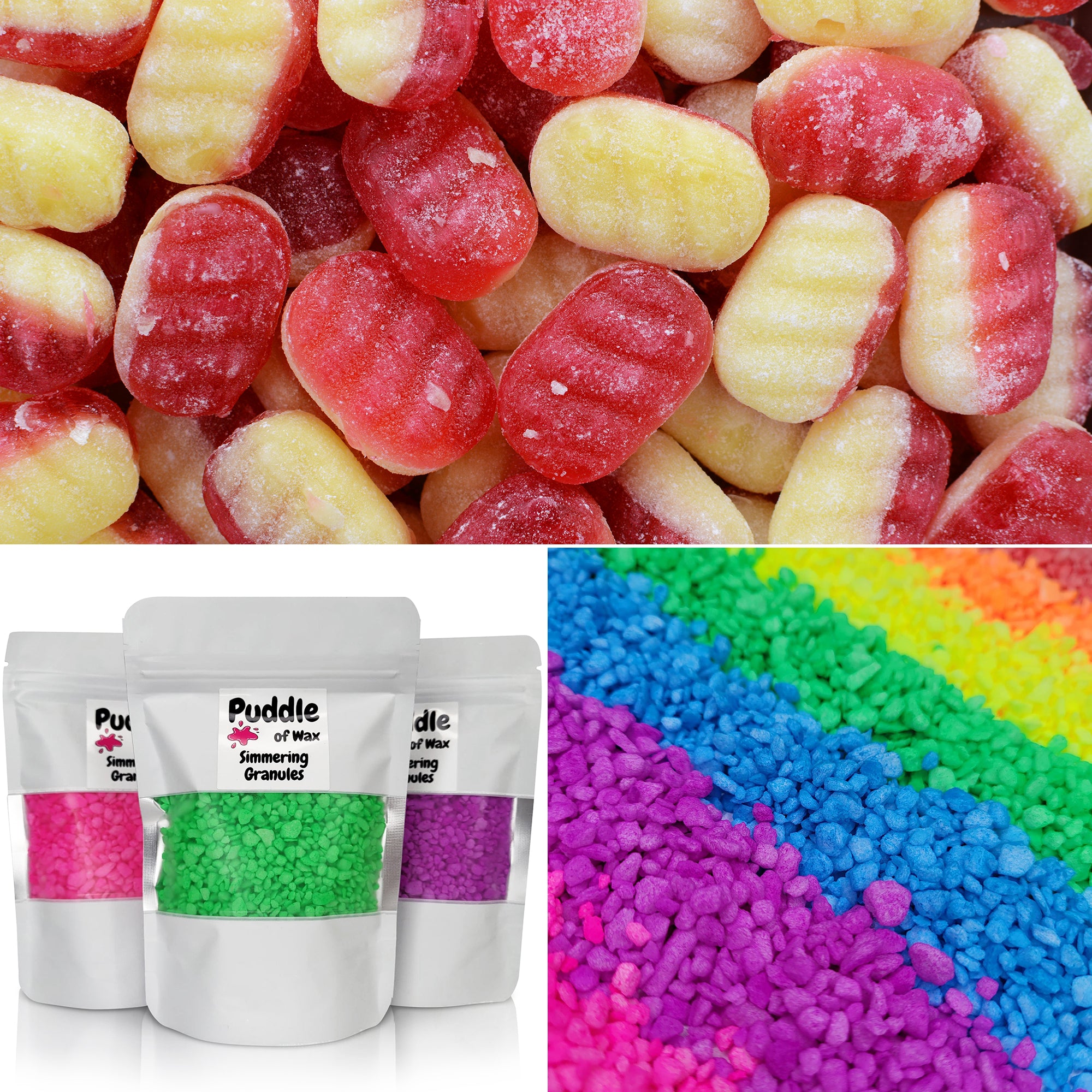 Simmering granules, also known as sizzlers or scented granules, are small beads infused with fragrance oil. They work similarly to wax melts and require no additional oil or water to use.