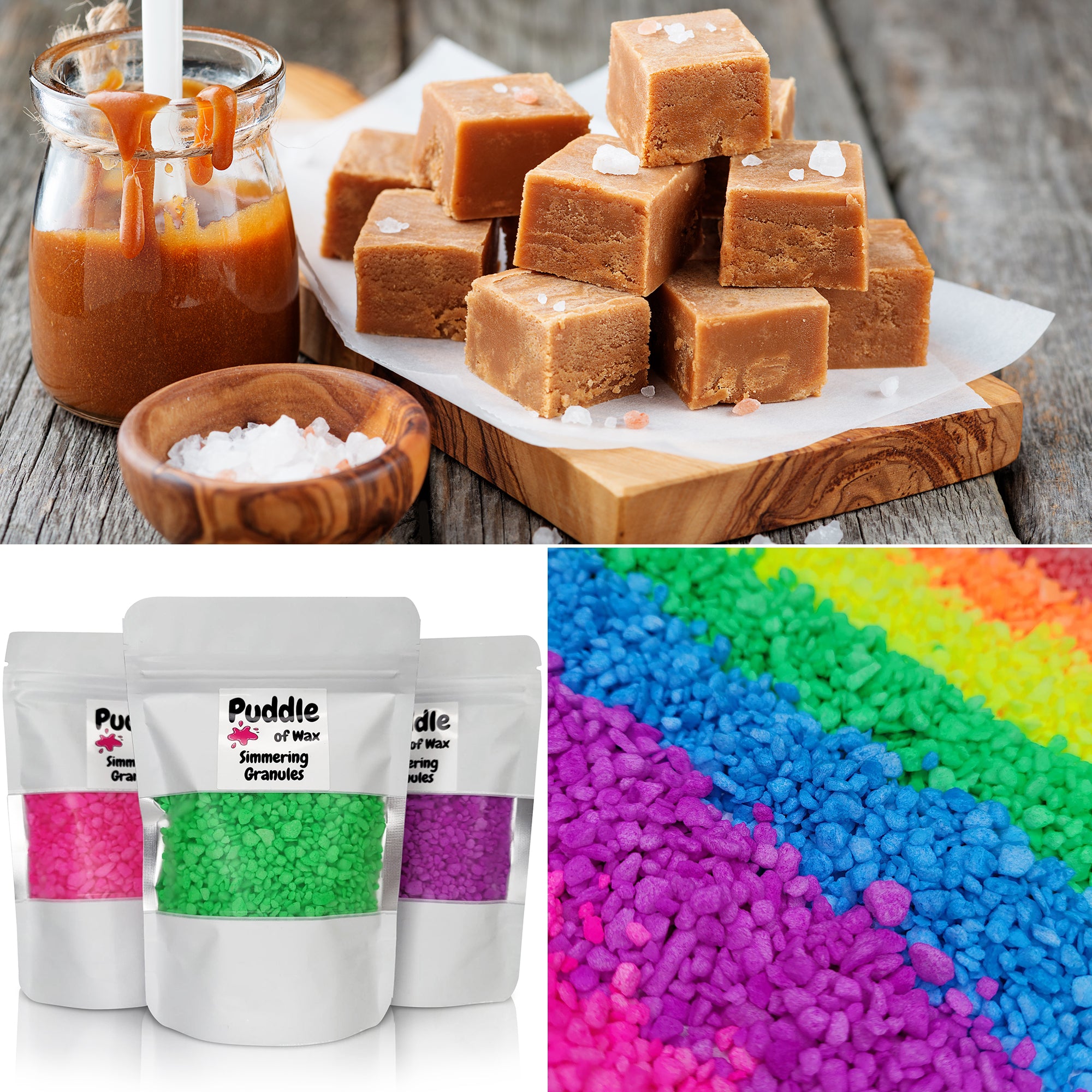 Simmering granules, also known as sizzlers or scented granules, are small beads infused with fragrance oil. They work similarly to wax melts and require no additional oil or water to use.