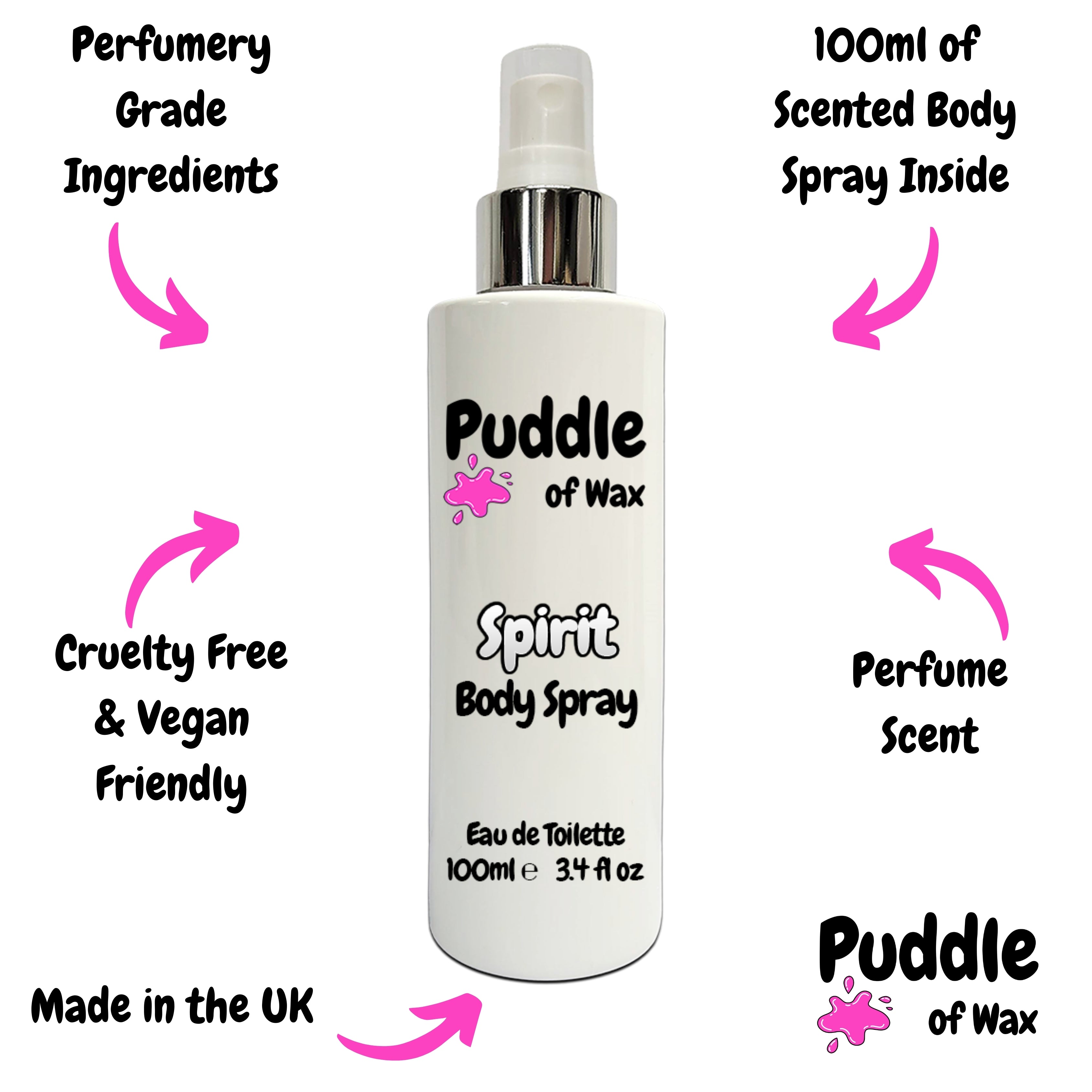 Our body sprays are packaged in modern, gloss white bottles, available in a convenient 100ml size. Each bottle is equipped with a stylish atomiser for consistent and even mist distribution.