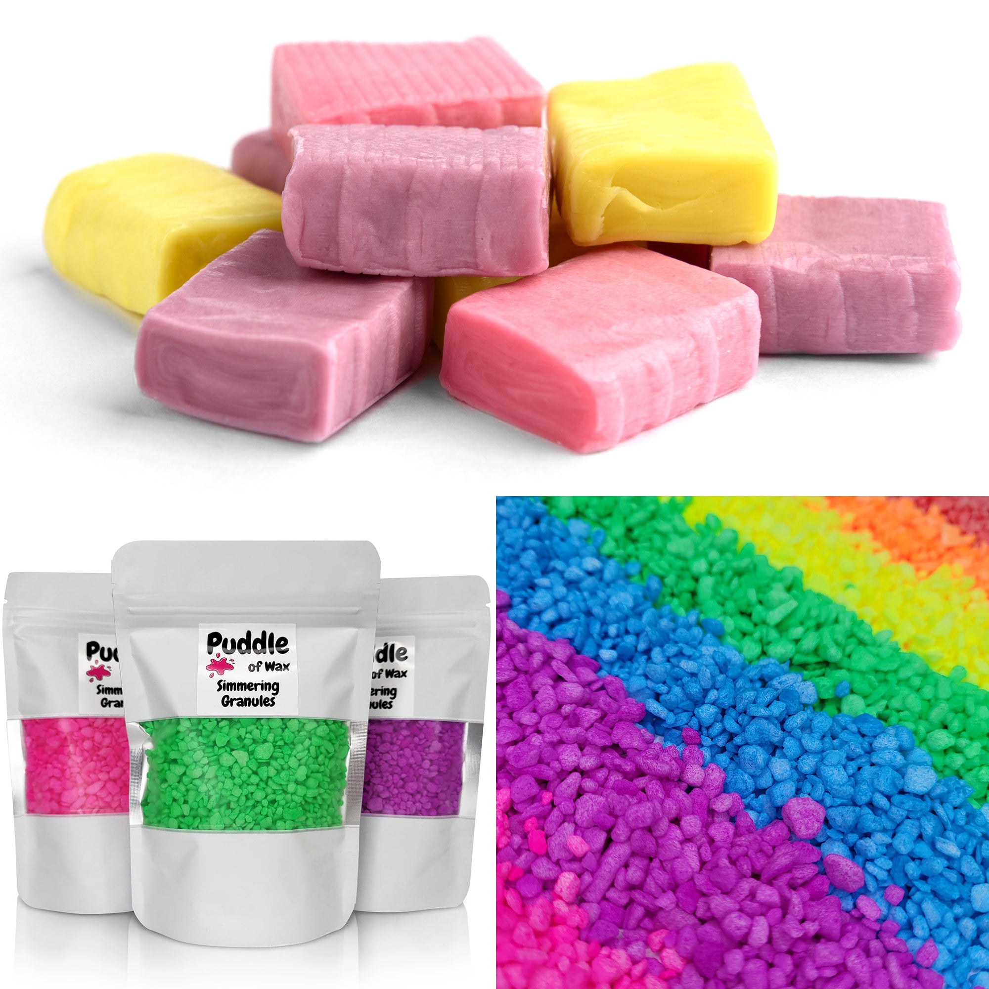 Simmering granules, also known as sizzlers or scented granules, are small beads infused with fragrance oil. They work similarly to wax melts and require no additional oil or water to use.