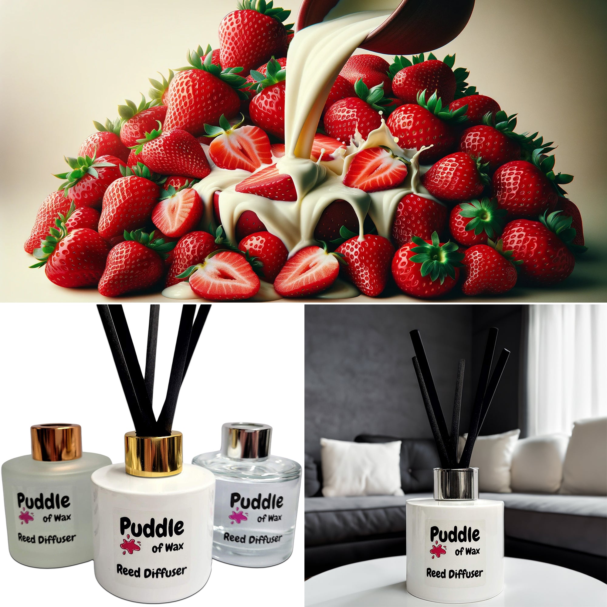 Strawberries & Cream Scent: A sweet strawberry accord combining fruity notes of pear, banana, cherry and raspberry with a whisper of delicate florals, all drying onto a substantive base of vanilla.