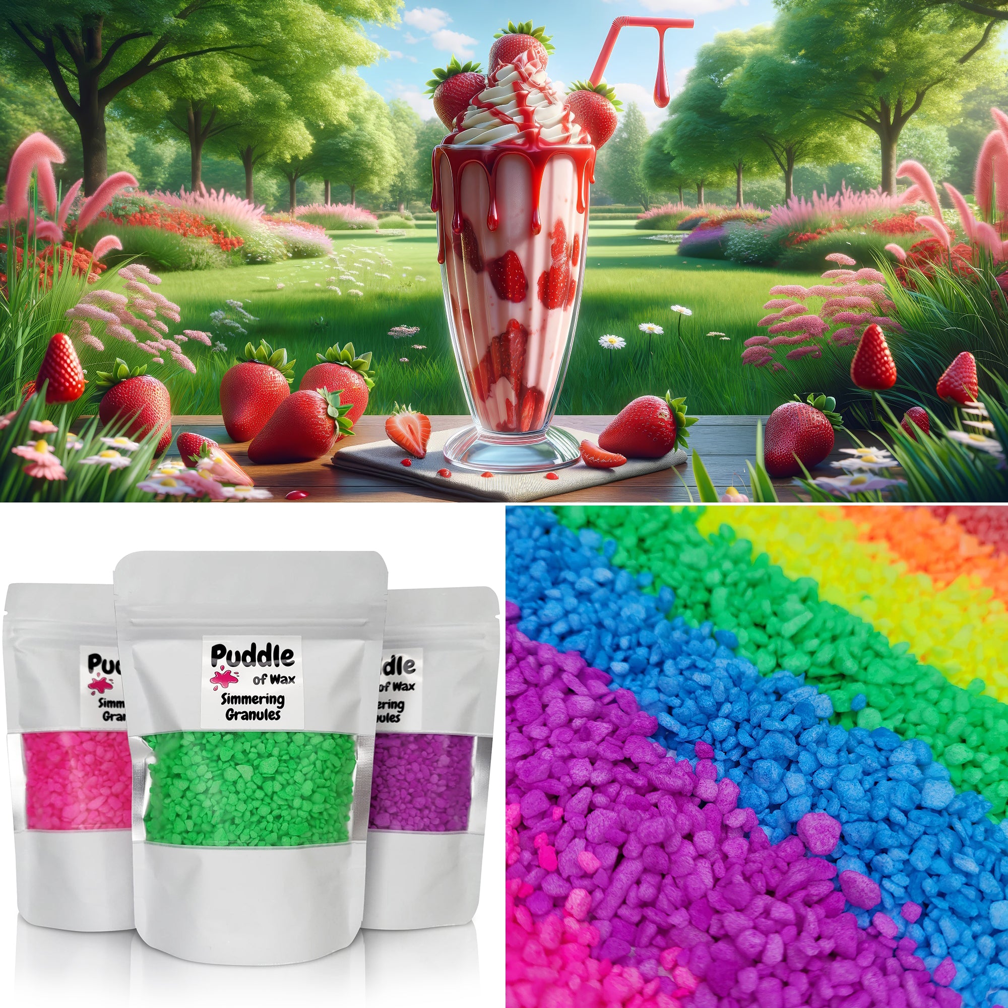 Strawberry Milkshake Scent: A sweet strawberry milkshake fragrance opening with juicy strawberries blended with sweet strawberry ice cream and cold creamy milk.