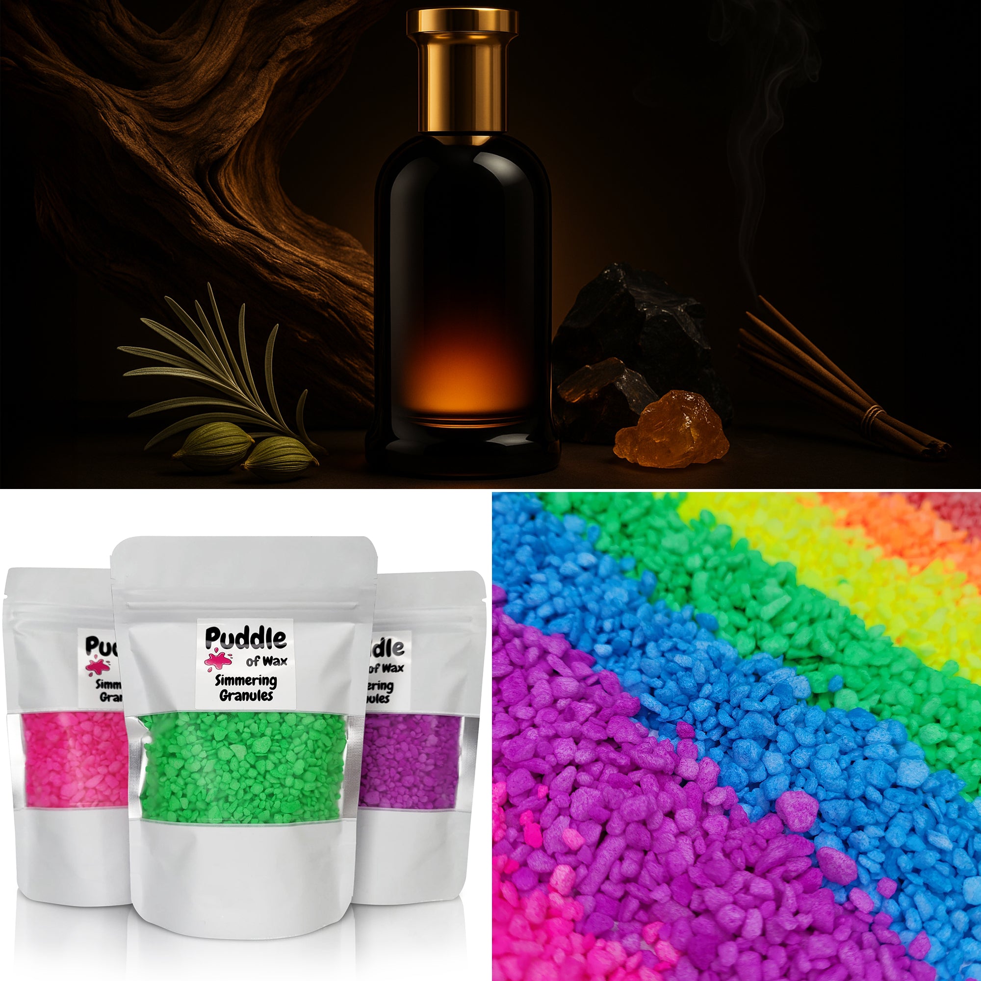 Simmering granules, also known as sizzlers or scented granules, are small beads infused with fragrance oil. They work similarly to wax melts and require no additional oil or water to use.