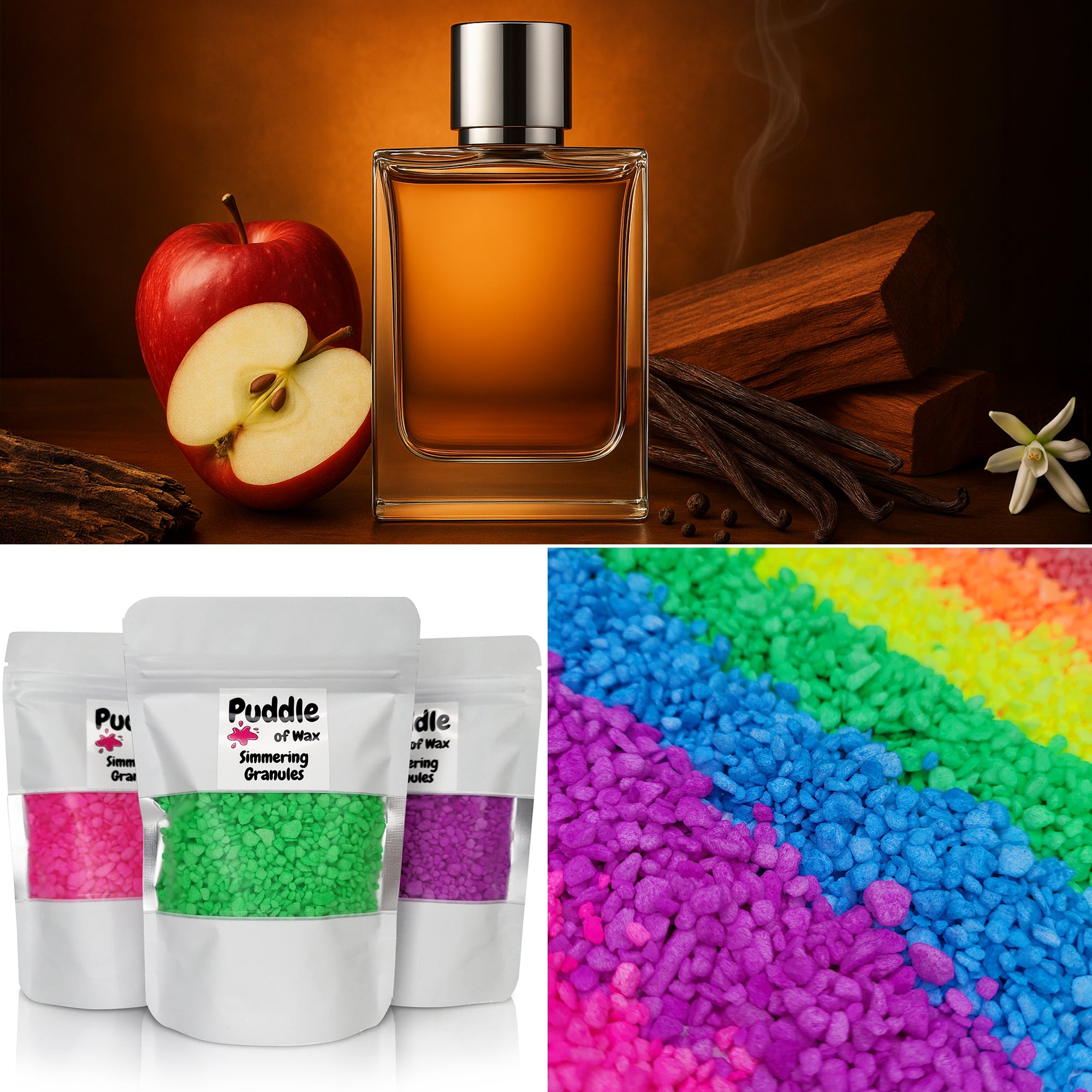 Simmering granules, also known as sizzlers or scented granules, are small beads infused with fragrance oil. They work similarly to wax melts and require no additional oil or water to use.
