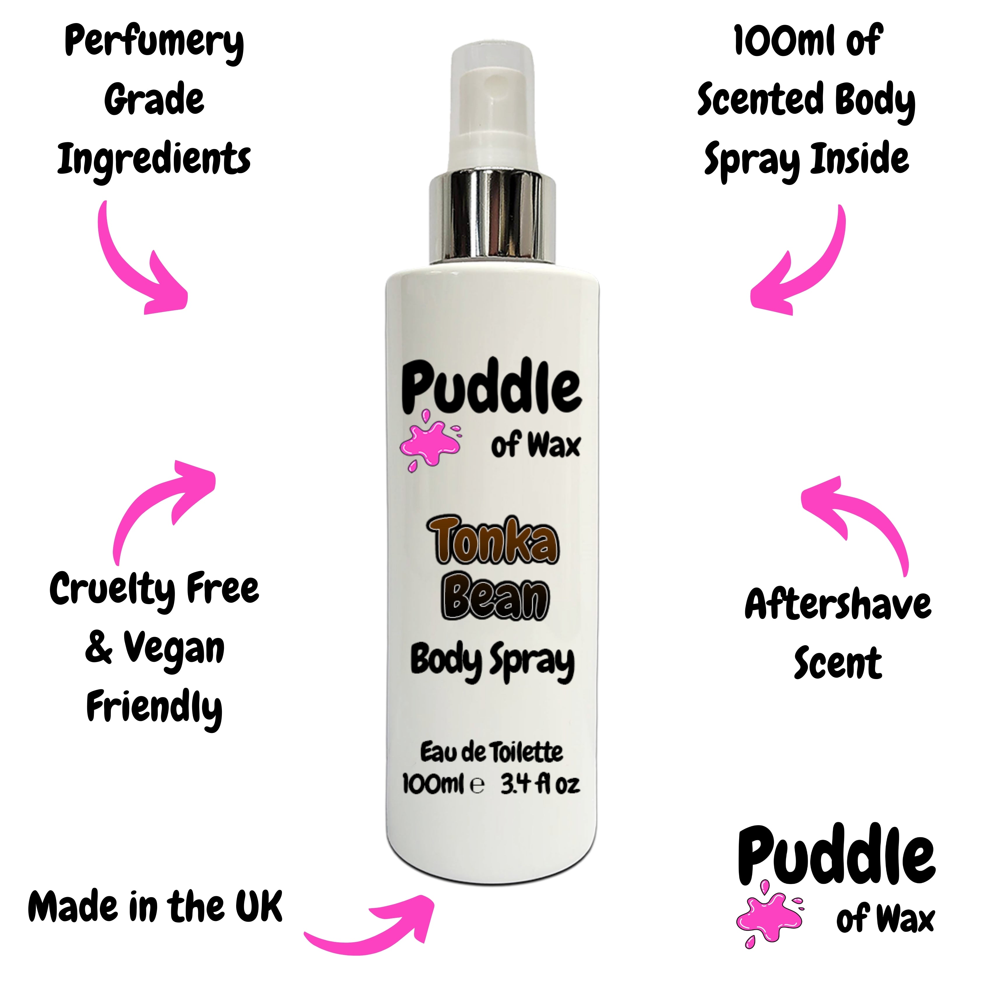 Our body sprays are packaged in modern, gloss white bottles, available in a convenient 100ml size. Each bottle is equipped with a stylish atomiser for consistent and even mist distribution.