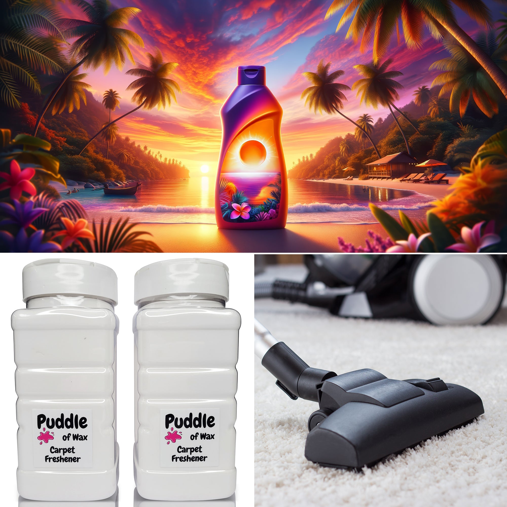 Our carpet fresheners are packaged in clear plastic containers that hold 500g of powder. Each one is equipped with a shaker-style cap, allowing you to easily sprinkle the powder over carpets or into small spaces.