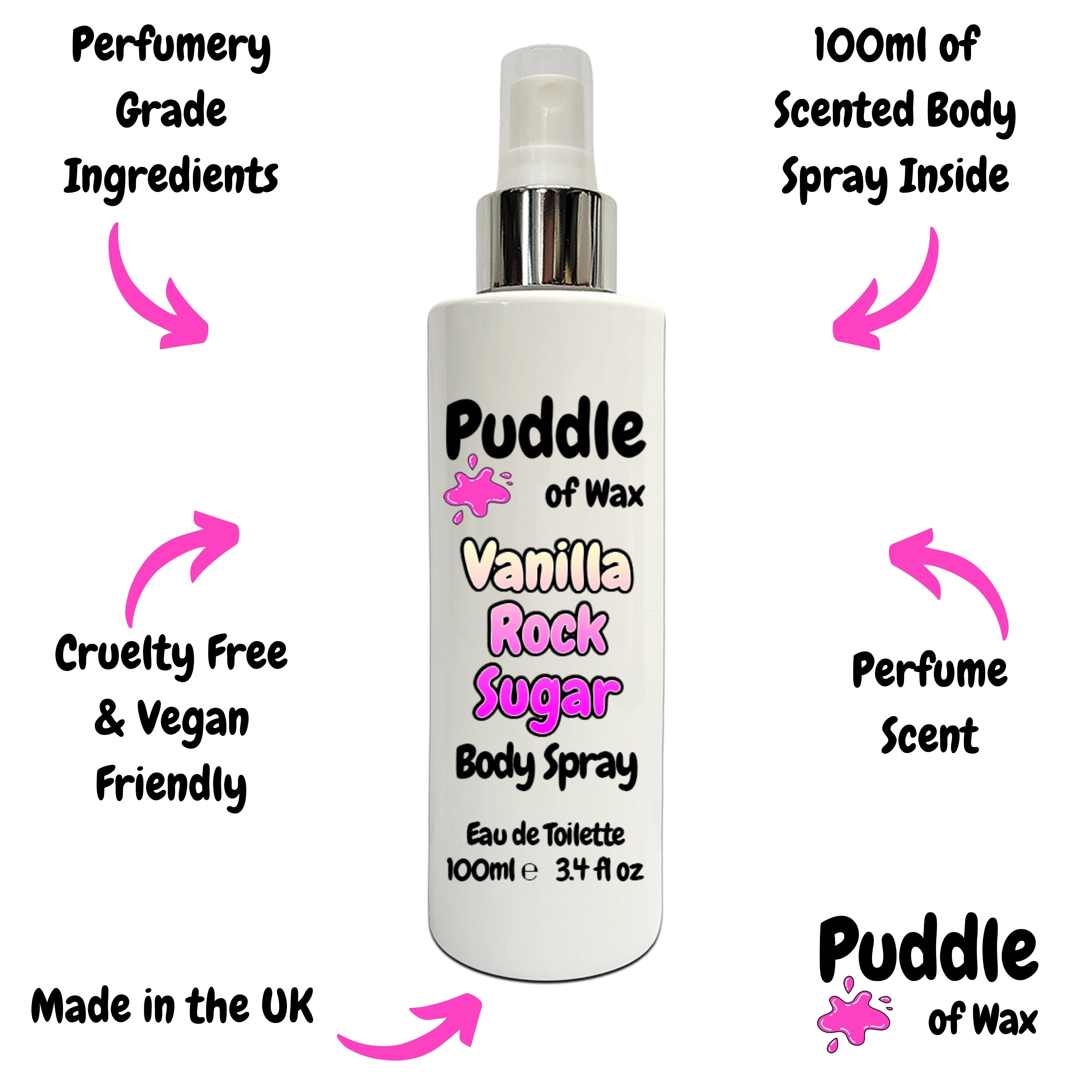 Vanilla Rock Sugar Scent: A swirl of vanilla, ripe pear, rum and soft ylang ylang opens with instant charm, wrapped in the nostalgic sweetness of bubble gum, jellybean and caramel. As it deepens, warm woods, tonka and sugared musk create a deliciously addictive trail. Viral, sweet, bold, and unapologetically magnetic.