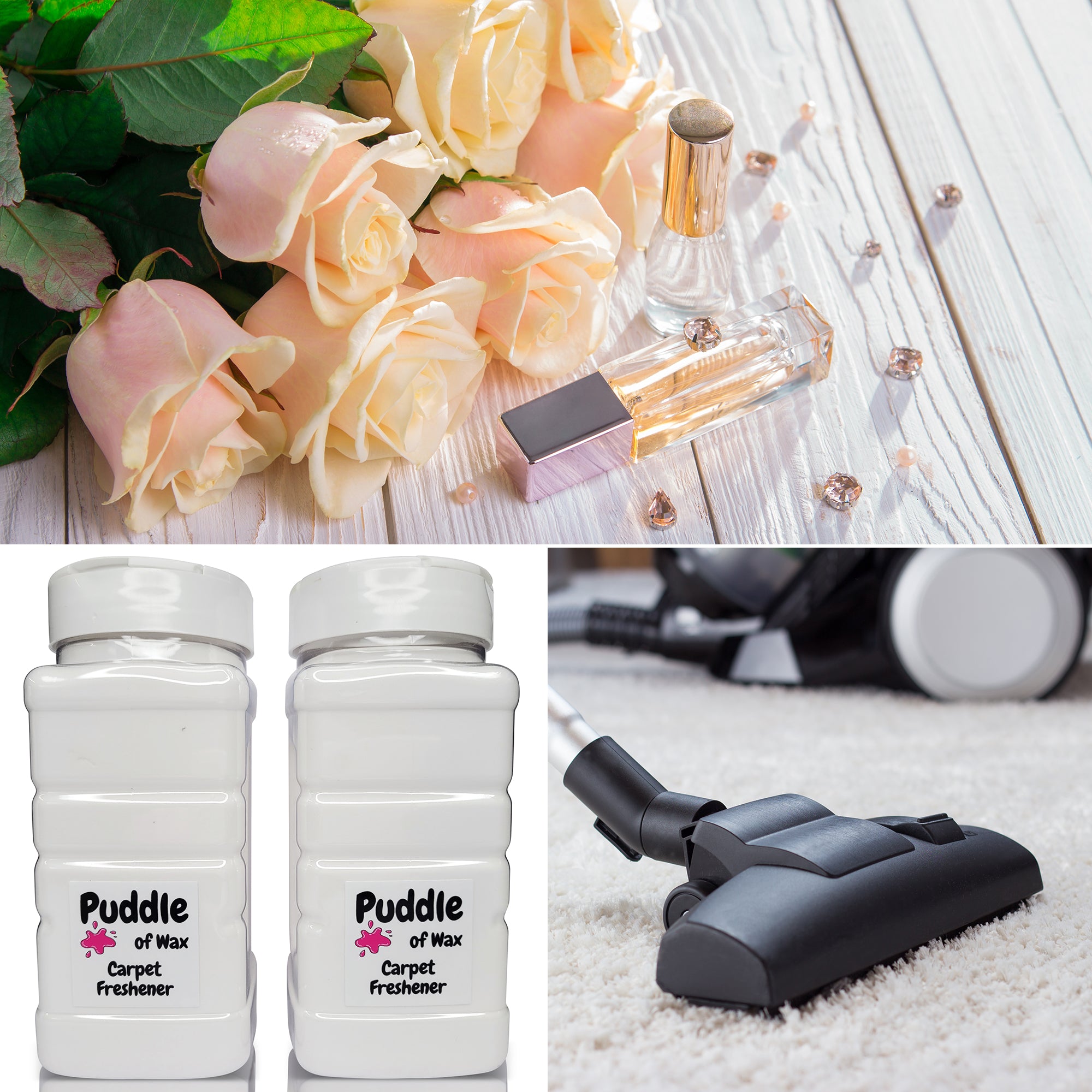 Our carpet fresheners are packaged in clear plastic containers that hold 500g of powder. Each one is equipped with a shaker-style cap, allowing you to easily sprinkle the powder over carpets or into small spaces.